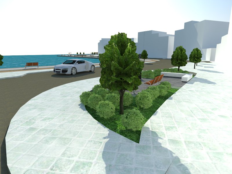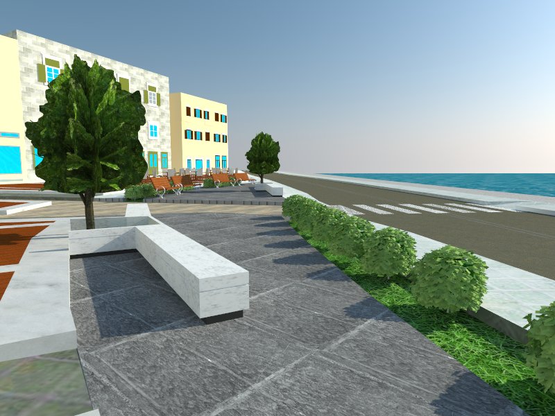 · Η δημιουργία καθιστικών χώρων, καθώς σε όλη την περιοχή διαμορφώνονται μικρές πλατείες και τοποθετούνται καθιστικοί χώροι με σκίαστρα.