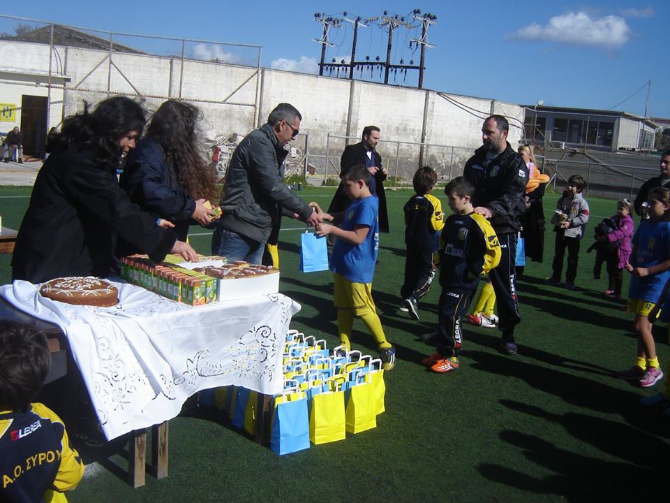 Παρουσία των αθλητών, των γονέων και σύσσωμου του τεχνικού επιτελείου, η διοίκηση της ακαδημίας του Αθλητικού Ομίλου Σύρου, έκοψε την παραδοσιακή πρωτοχρονιάτικη πίτα της. Κεντρικό μήνυμα στην εκδήλωση κοπής της πίτας από τους ανθρώπους της ομάδας ήταν “Τα παιδιά μας να ευχαριστιούνται το άθλημα που αγαπούν”