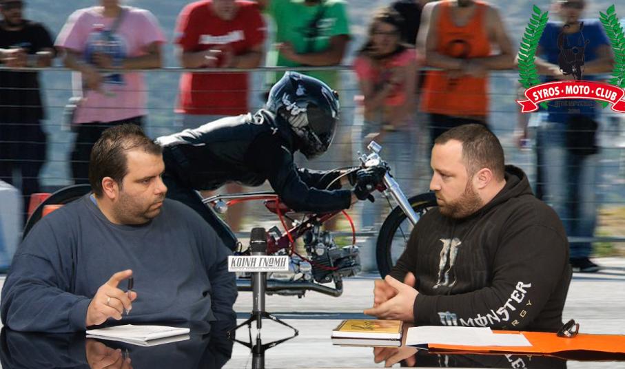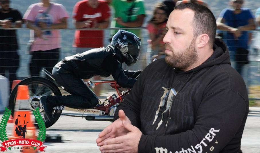 "Η αλήθεια είναι ότι ο πήχης που είχε ανεβάσει ο Σύλλογος από την ημέρα της λειτουργίας του το 2003-04, ήταν πάρα πολύ υψηλά. Τα διοικητικά συμβούλια μαζί με τον πρόεδρο τον Στρατή Ευστρατίου είχαν κάνει πάρα πολύ καλή δουλειά στο θέμα, αγώνα. Στη Σύρο ήρθαν και διοργανώθηκαν με μεγάλη επιτυχία αγώνες Πανελληνίου πρωταθλήματος Super Motard, dragster, motocross στο στρατόπεδο με αποκορύφωμα τον αγώνα Drift που είχε γίνει κι αυτό έχει συμβεί σε ελάχιστα σημεία στην Ελλάδα και ήταν πάρα πολύ εντυπωσιακός. Όλα αυτά έπεφταν στην πλάτη ενός ανθρώπου κι αυτό για διαφόρους λόγους, κάποια στιγμή και συγκεκριμένα τα τελευταία δύο χρόνια ο Σύλλογος είχε αδρανοποιηθεί. Μετά αρκετές συζητήσεις, μία παρέα μελών που ήταν και στο παλιό Σύλλογο αποφασίσαμε να κινηθούμε πιο ενεργά, για να μην χαθεί ο Σύλλογος γιατί είχε γίνει πάρα πολύ καλή δουλειά και ήταν μέσα στα κοινά με διάφορες δραστηριότητες. Ο Σύλλογος πάντα συμμετείχε ενεργά στα δρώμενα του νησιού. Έτσι είπαμε να κινηθούμε, απευθυνθήκαμε σε έναν δικηγόρο και κάναμε μία αίτηση στον Ειρηνοδικείο για προσωρινό διοικητικό συμβούλιο. Μετά από τις απαραίτητες ενέργειες τα 12 αρχικά άτομα που υπήρχαν εξέλεγξαν τα 8 που θα απαρτίζουν το προσωρινό Δ.Σ. και γι' αυτό ακόμη δεν έχουμε "μοιράσει" καρέκλες. Απλά όλοι όσοι είμαστε αυτή τη στιγμή θέλουμε ο Σύλλογος να περάσει σε μία νέα εποχή, να κάνει μία νέα αρχή και να αποκτήσει κοινωνικό χαρακτήρα. Σ' αυτό το σημείο θα ήθελα να αναφερθώ στα παιδιά που είναι μαζί με εμένα στο διοικητικό συμβούλιο, τα παιδιά είναι: ο Ευάγγελος Γαβρίλης, ο Δημήτρης Λιγνός, Ο Ηλίας Γαβιώτης, ο Δημήτρης Μπουζικάκος, ο Χρήστος Ρούσσος, Ο Νίκος Φωτεινιάς κι άλλοι. Σιγά -σιγά, βήμα-βήμα, καταφέρνουμε να φέρνουμε πίσω στην "αγκαλιά" του Συλλόγου, παλιά και νέα μέλη τα οποία τους αρέσει η μηχανή και θέλουν να είναι κοντά μας. Ζούμε για τις δύο... ρόδες, κάνουμε βόλτες, ταξίδια, κάποιοι πάνε σε αγώνες, όλοι αυτοί έχουν ένα κοινό, την αγάπη τους για τη μηχανή, όλοι θέλουμε ενεργό τον Σύλλογο Μοτοσικλετιστών".