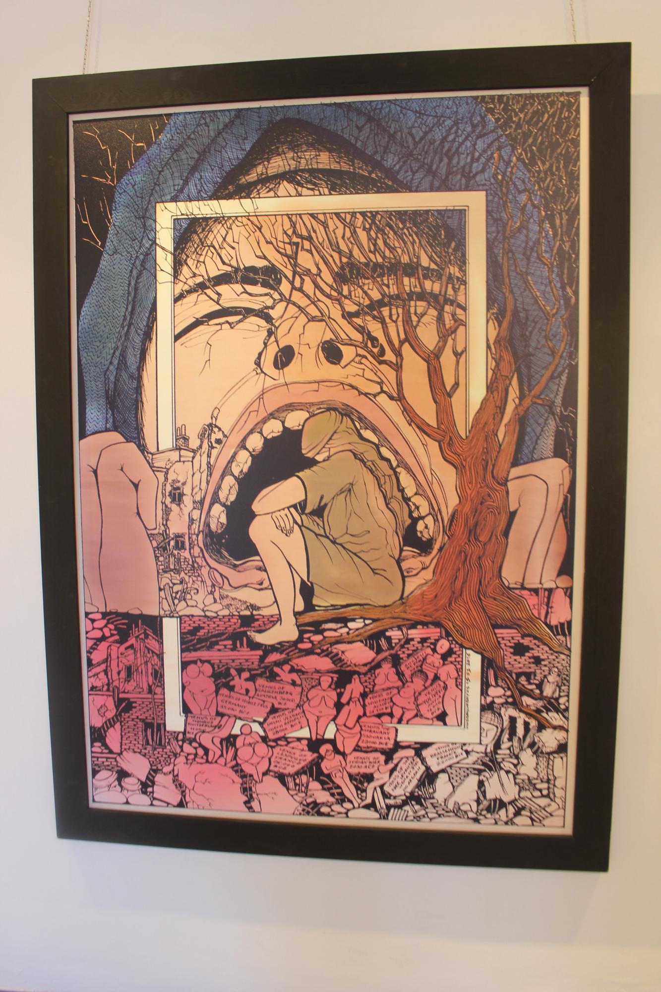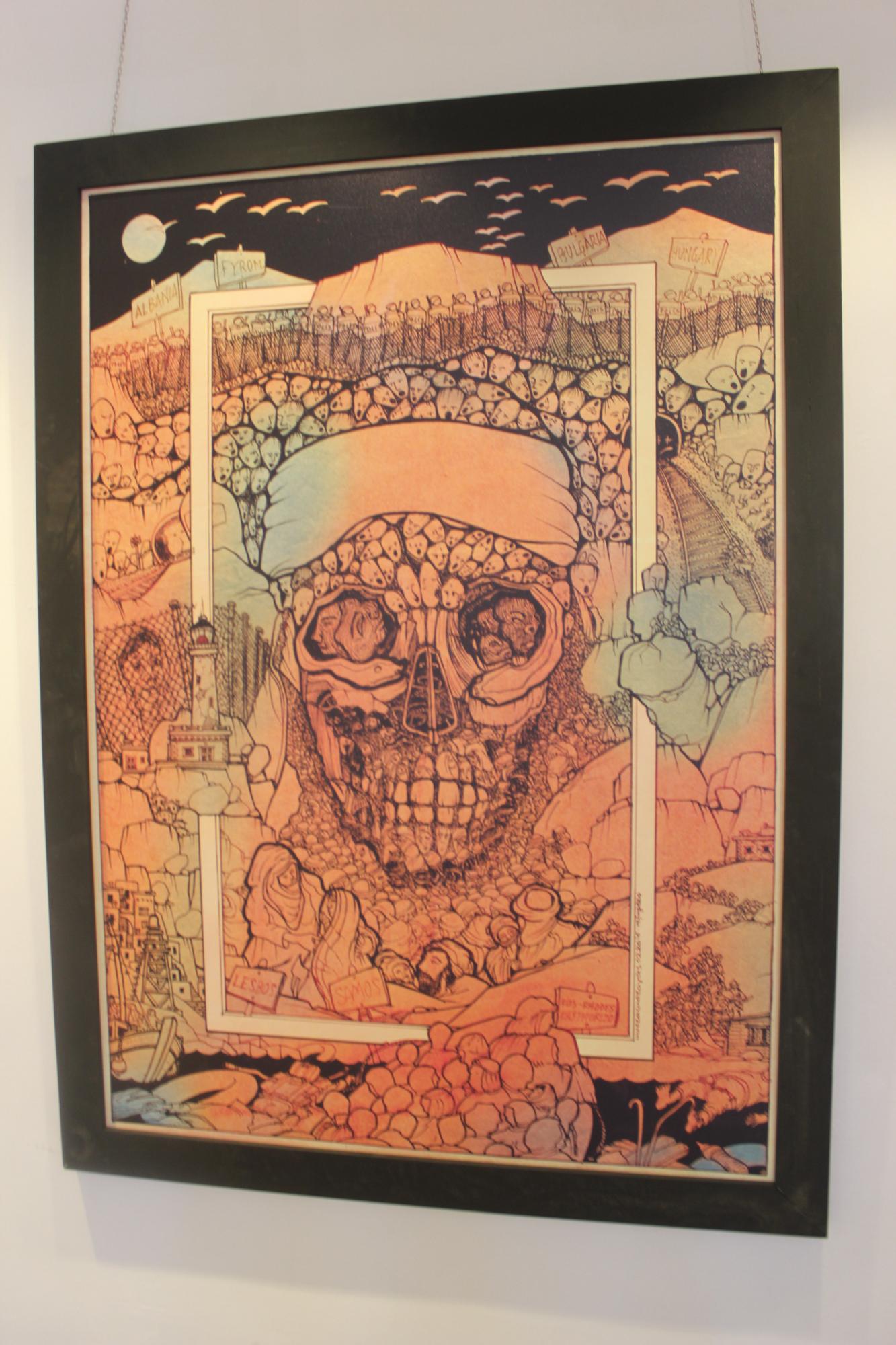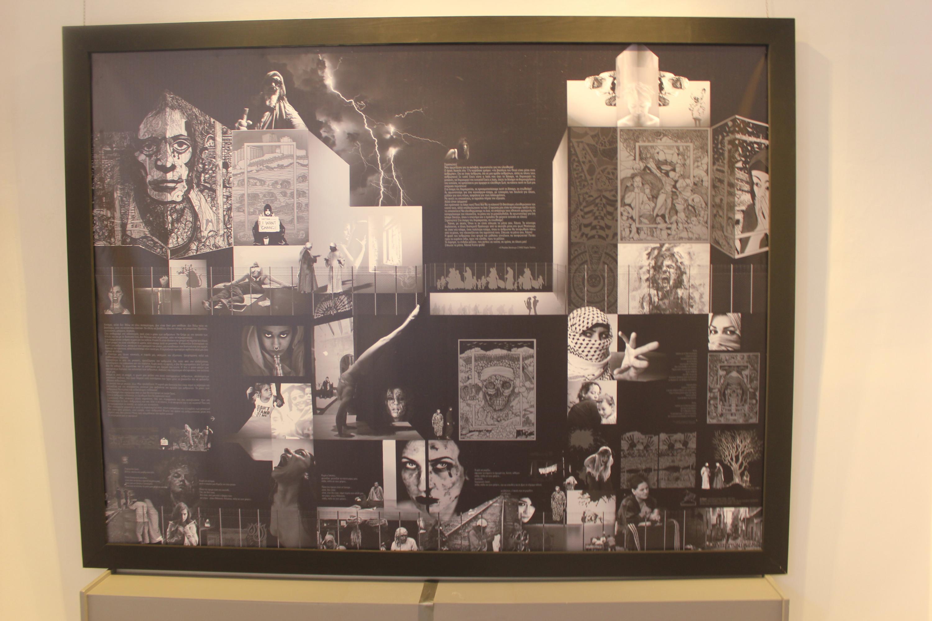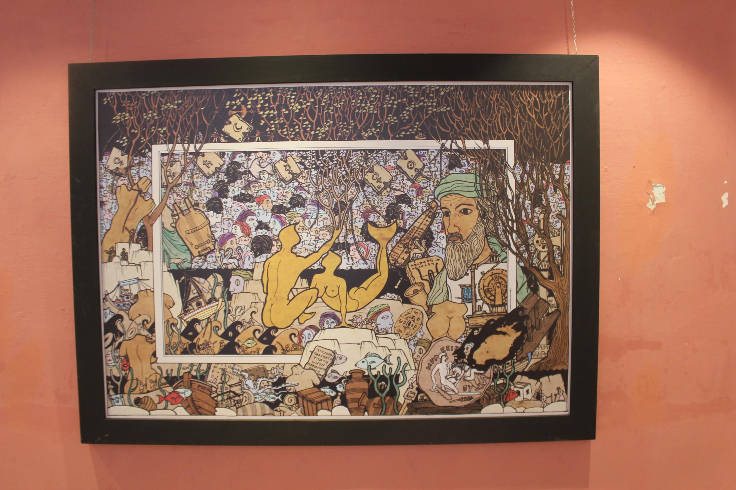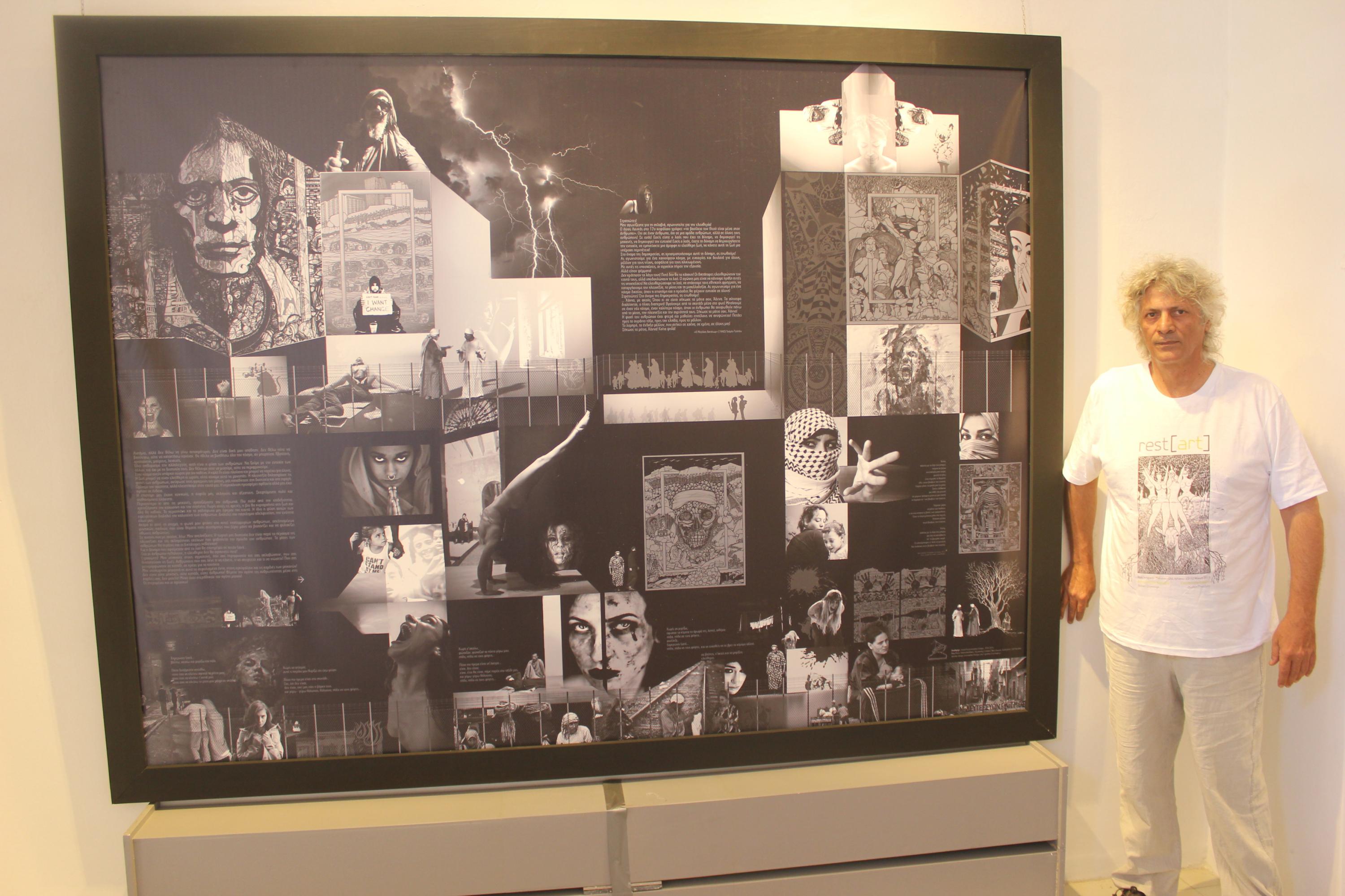 Οι επισκέπτες έχουν την ευκαιρία να θαυμάσουν μία επιλογή σχεδίων που δημιουργήθηκαν κατά την περίοδο 2011 – 2016 και τη σύνθεση «δευτερεύων πνιγμός» με σχέδια του ιδίου, φωτογραφίες από το photohunter DimitristheAthens, αστραπές του Ζοζέφ Βακόνδιου, φωτογραφία ενός έργου λάδι σε καμβά του Νίκου Βαβάτση και 5 σκίτσα του Bansky.