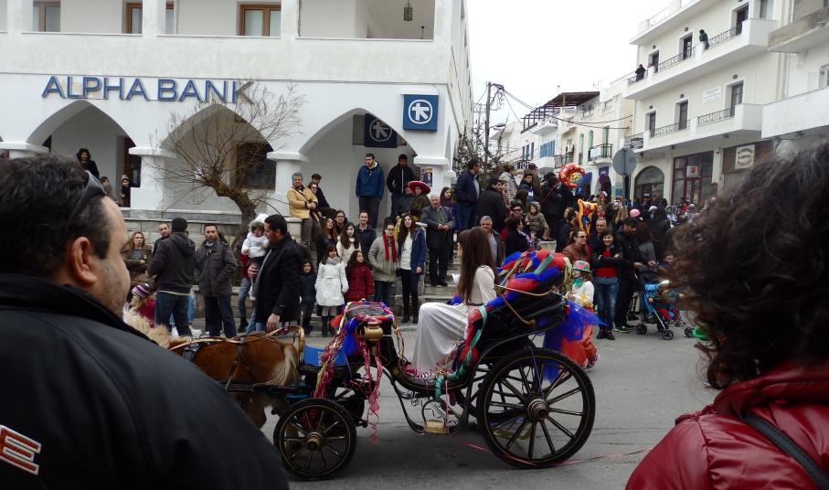 Στην καρναβαλική παρέλαση, οι νέοι και νέες του νησιού, φρόντισαν να φτιάξουν ένα φανταστικό κλίμα, συμπαρασύροντας μαζί τους όλους τους θεατές, οι οποίοι βρίσκονταν εκεί για να γιορτάσουν.