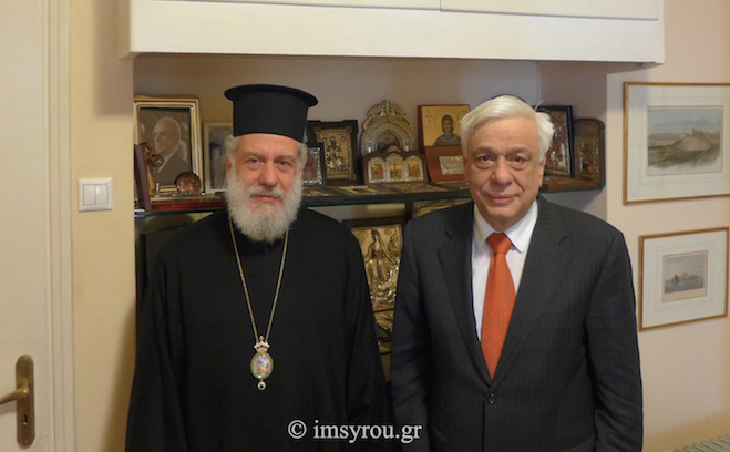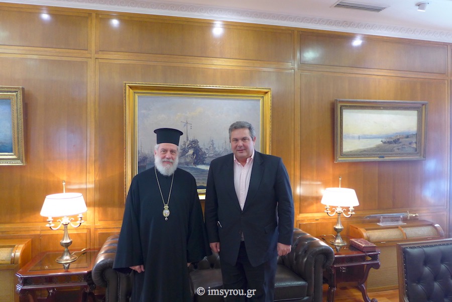 Συγκεκριμένα, συνάντησε τον πρόεδρο των Ανεξάρτητων Ελλήνων και Υπουργό Εθνικής Άμυνας, Πάνο Καμμένο στο γραφείο του, όπου είχε την ευκαιρία να τον συγχαρεί για την ανάληψη των καθηκόντων του αλλά και να του ευχηθεί επιτυχία στην “εθνωφελή απόστολή του”, ενώ παράλληλα, την ίδια ημέρα, ο Σεβασμιώτατος είχε συνάντηση με τον νεοεκλεγέντα Πρόεδρο της Δημοκρατίας, Προκόπη Παυλόπουλο, στον οποίο εξέφρασε τις εγκάρδιες ευχές του για την άξια εκλογή του στο Ανώτατο Πολιτειακό Αξίωμα της χώρας.