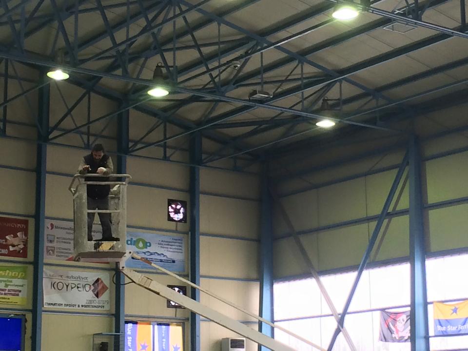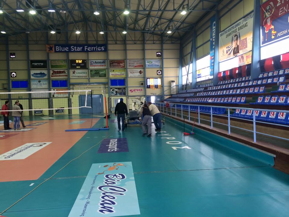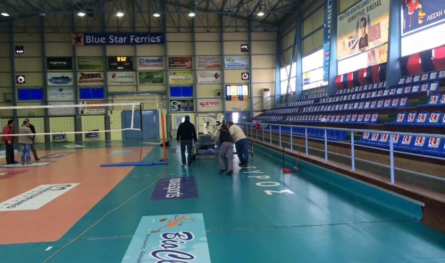 Εργοτάξιο θυμίζει αυτές τις μέρες η Β' κλειστή αίθουσα του Αθλητικού Κέντρου του Δήμου Σύρου Ερμούπολης, αφού τεχνικοί του Δήμου και της Περιφέρειας έχουν πέσει με τα "μούτρα" στη δουλειά, ώστε όλα να είναι έτοιμα την ημέρα διεξαγωγής του final four του κυπέλλου Ελλάδας.