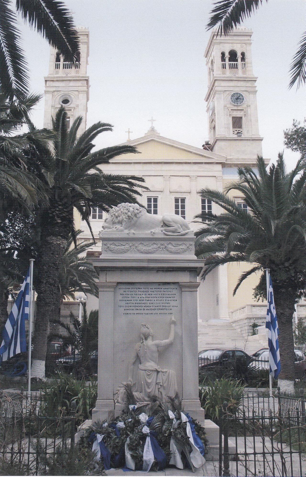 Κύριο μέλημα των Ερμουπολιτών, από τα πρώτα χρόνια της δημιουργίας της πόλης τους, ήταν να τιμήσουν αυτούς που έπεσαν στον Αγώνα, αλλά και όσους βοήθησαν με το έργο και τη διδασκαλία τους στην πνευματική αναγέννηση του τόπου. Η πρόταση για την ανέγερση του μνημείου χρονολογείται από το 1858 όταν, με την ευκαιρία των εορτασμών για την εικοσιπενταετία της βασιλείας του Όθωνα, ο τότε Πρόεδρος του Δημοτικού Συμβουλίου της Ερμούπολης, Ζαννής Βούρος πρότεινε, υιοθετώντας παλαιότερη ιδέα, μαζί με την προτομή του βασιλιά, να στηθεί…. «μεγαλοπρεπές Μνημείον υπέρ των υπέρ Πίστεως και Πατρίδος απαγχονισθέντων, σφαγιασθέντων και κατά τον Ιερόν Αγώνα πεσόντων Ελλήνων και Φιλελλήνων ων τα οστά κείνται άταφα εν γη Ελληνική μεν αλλά δούλη». Για την τοποθέτηση του μνημείου ορίστηκε η κορυφή του λόφου Δήλι, όπου σήμερα υψώνεται ο Ιερός Ναός της Ανάστασης του Κυρίου.