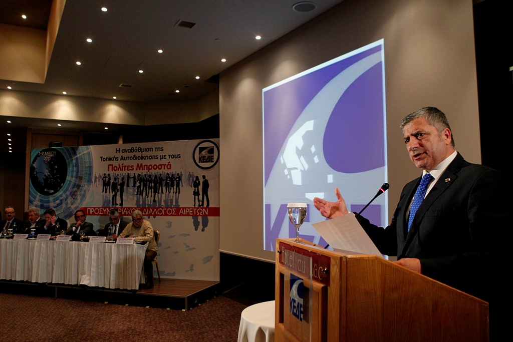 Συγκεκριμένα είπε πως «Η σημερινή Διοίκηση της Κ.Ε.Δ.Ε. επενδύει πολλά στην ενότητα και τη συνεργασία όλων των Δήμων της χώρας, χωρίς εξαιρέσεις, χωρίς αποκλεισμούς. Επενδύουμε πραγματικά σε ένα διαφορετικό μοντέλο λειτουργίας της Κ.Ε.Δ.Ε. που θα αναδεικνύει τα ζητήματα όχι μόνον σε τοπικό αλλά και σε εθνικό επίπεδο. Σε μια Κ.Ε.Δ.Ε. που δεν θα αρκείται σε ρόλο παρατηρητή σε αποφάσεις και πολιτικές που θα λαμβάνουν άλλοι για μας, αλλά σε μια Κ.Ε.Δ.Ε. που θα συνδιαμορφώνει τις αποφάσεις αυτές με βάση τις δικές μας ανάγκες. Σε μια Κ.Ε.Δ.Ε. που θα αντιμετωπίζει όλους τους Δήμους μέλη της ισότιμα. Η συνεργασία μας θα γίνεται πλέον με όρους μέλλοντος κι όχι με λογικές του παρελθόντος. Θέλουμε να δημιουργήσουμε με όλους τους θεσμούς, μια σχέση ισότιμης συνεργασίας, με όλα τα επίπεδα εξουσίας σε αυτή τη χώρα. Όχι επαιτώντας, αλλά απαιτώντας στη βάση επεξεργασμένων πολιτικών προτάσεων και θέσεων. Για να είναι όμως καθοριστικός ο ρόλος μας, χρειάζεται να είναι οι Δήμοι μας ισχυροί».
