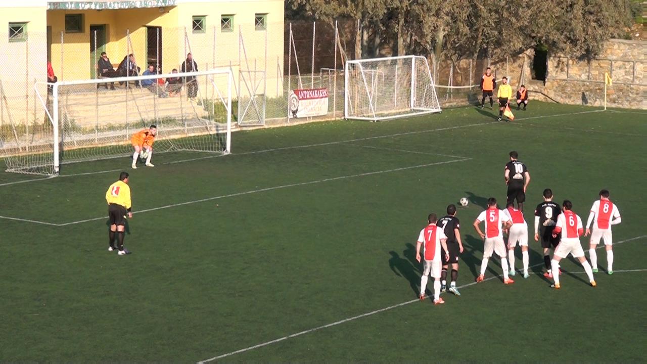 85' Ο Βαμβακούσης με φάουλ πέντε μέτρα πριν από το κέντρο του γηπέδου έστειλε τη μπάλα μετά το ταγικό λάθος του τερματοφύλακα του Πάγου στα δίχτυα για το 2-1.