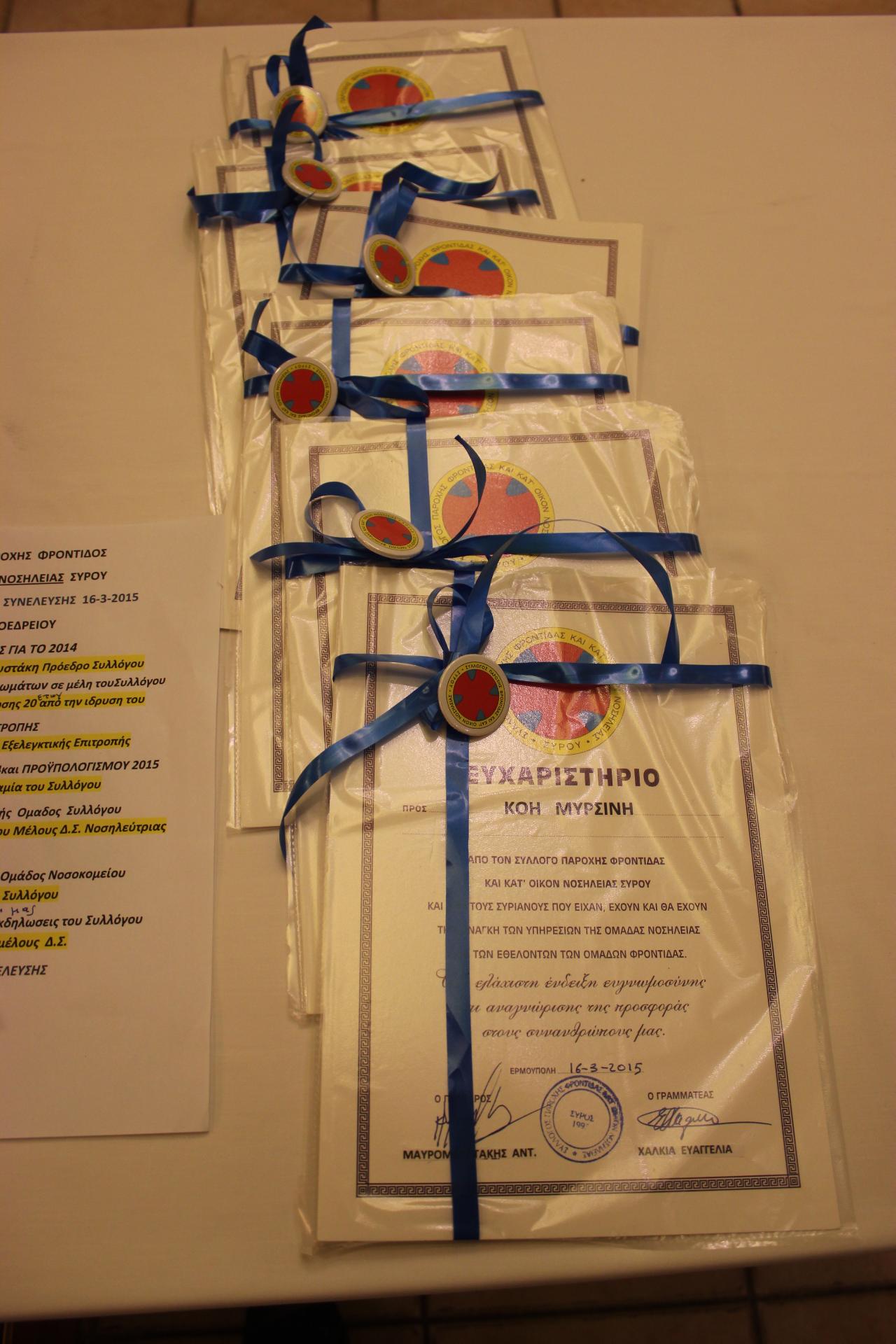 Τιμητικό δίπλωμα σε δώδεκα εκ των παλαιοτέρων μελών του, που εξακολουθούν να ενισχύουν το έργο του, αποτελώντας αναπόσπαστο κομμάτι της εικοσαετούς παρουσίας του στο κοινωνικό γίγνεσθαι του νησιού, απένειμε χθες το απόγευμα ο Σύλλογος Παροχής Φροντίδας και Κατ' Οίκον Νοσηλείας Σύρου, κατά την ετήσια Γενική Συνέλευσή του στο ξενοδοχείο Ερμής.