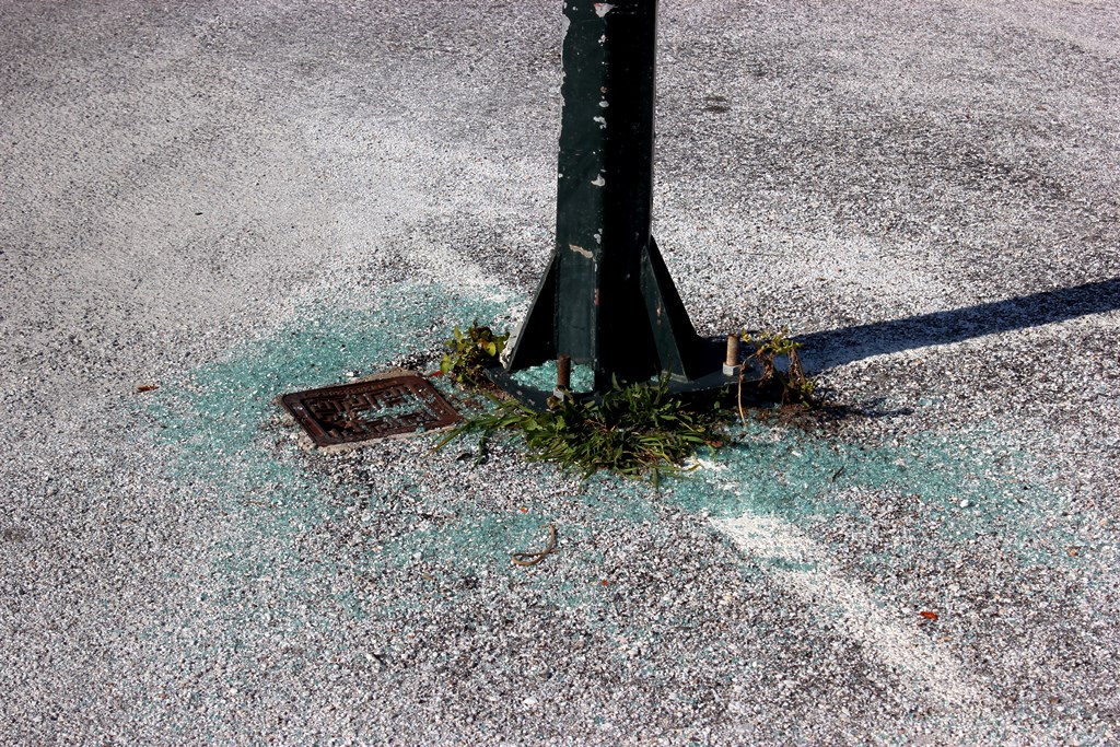 Αν και σε πολύ ηπιότερη μορφή, τα προβλήματα είναι προφανή και στον ευρείας χρήσεως χώρο στάθμευσης. Πιο συγκεκριμένα, υπάρχουν στύλοι, οι οποίοι στις άκρες, στο σημείο του φωτιστικού, έχουν στραβώσει, ενώ σε μερικούς άλλους έχουν σπάσει τα τζάμια των φωτιστικών, αφενός αφήνοντας ακάλυπτους τους λαμπτήρες και αφετέρου γεμίζοντας σπασμένα γυαλιά το έδαφος γύρω από τον στύλο.