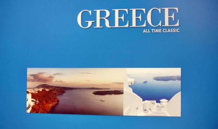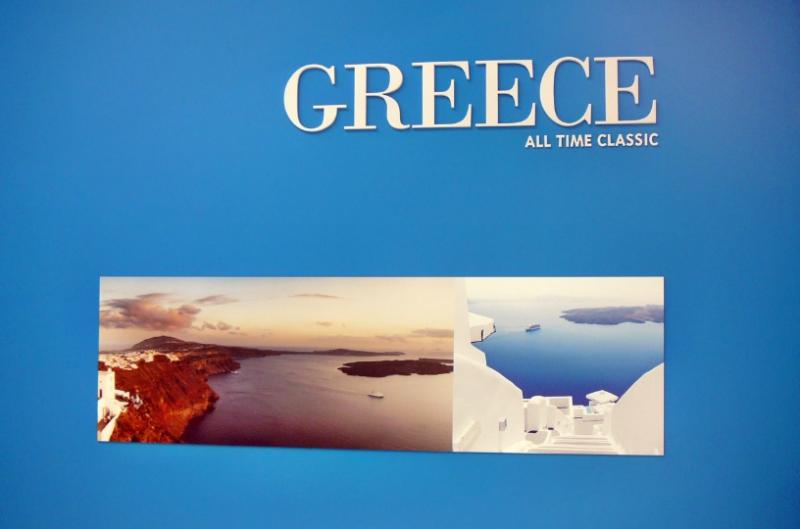 Το περίπτερο που φιλοξενείται η Σαντορίνη κοσμείται και από το νέο λογότυπο της, “Santorini The One”, το οποίο και βρίσκεται σε πρωταγωνιστική θέση.