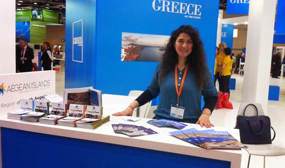 Η αναπληρώτρια Υπουργός Τουρισμού Έλενα Κουντουρά επισκέφτηκε το περίπτερο της Πάρου και συνομίλησε με την κ. Τριπολιτσιώτη, εκδηλώνοντας την αγάπη της και το ενδιαφέρον της για το νησί.