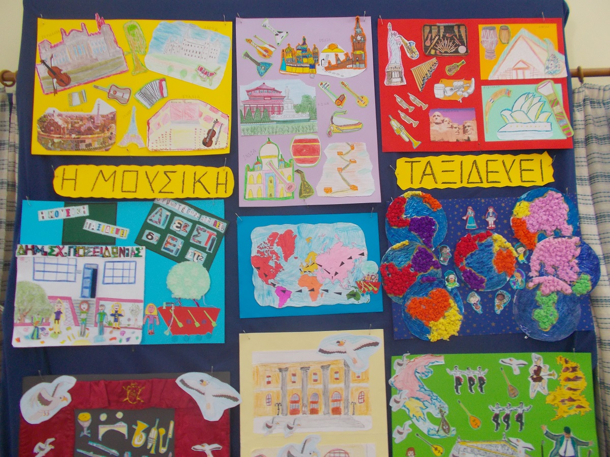 Τέλος, οι μαθητές της Δ’, Ε’ και ΣΤ’ τάξης ταξίδεψαν μουσικά το κοινό μαζί με τη δασκάλα τους Ειρήνη Μυτιληναίου. Πηγή έμπνευσης του προγράμματος αποτέλεσαν διάφορα κεφάλαια των βιβλίων της μουσικής. 94 μαθητές χωρισμένοι σε ομάδες συνέλεξαν πληροφορίες, σχεδίασαν, κατασκεύασαν, ζωγράφισαν, ηχογράφησαν, έμαθαν τραγούδια και επί δύο συνεχόμενες ημέρες, επί επτά ώρες την ημέρα χρειάστηκε να βγάλουν 2000 φωτογραφίες για να μπορέσουν να αποδώσουν την κίνηση της ταινίας «καρέ- καρέ». Στη συνέχεια οι φωτογραφίες επεξεργάστηκαν από τη μουσικό μας με ένα πρόγραμμα στον ηλεκτρονικό υπολογιστή που κάνει μοντάζ.