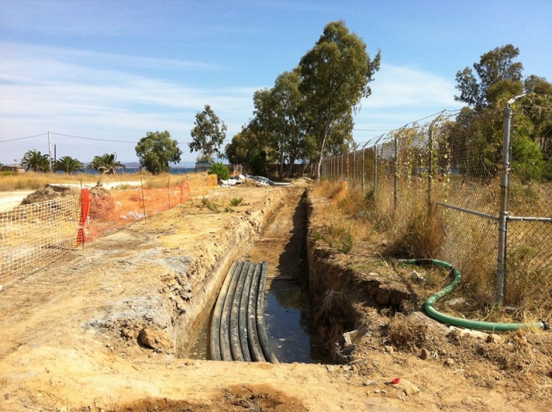 Η τοποθέτηση και διάστρωση των πλεοναζόντων προϊόντων εκσκαφών (αδρανών υλικών), τα οποία θα προκύψουν από τις χωματουργικές εργασίες του έργου διασύνδεσης των Κυκλάδων με το Ελληνικό Σύστημα Μεταφοράς Ηλεκτρικής Ενέργειας, εξασφαλίζεται μέσω της σχετικής σύμβασης μεταξύ του Δήμου Σύρου – Ερμούπολης και της Εταιρείας ΕΛΕΚΤΡΟΜΕΚ ΑΕ.