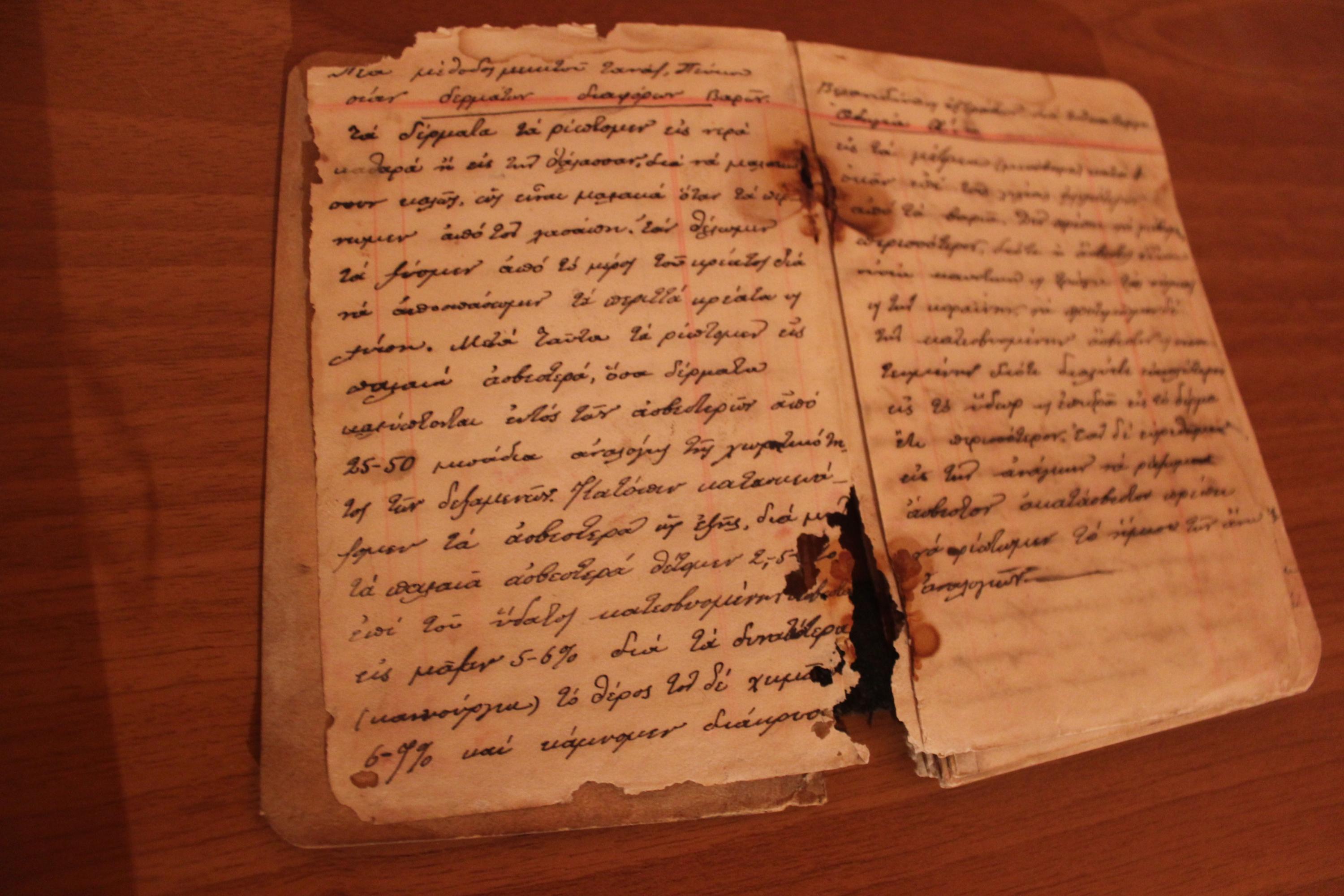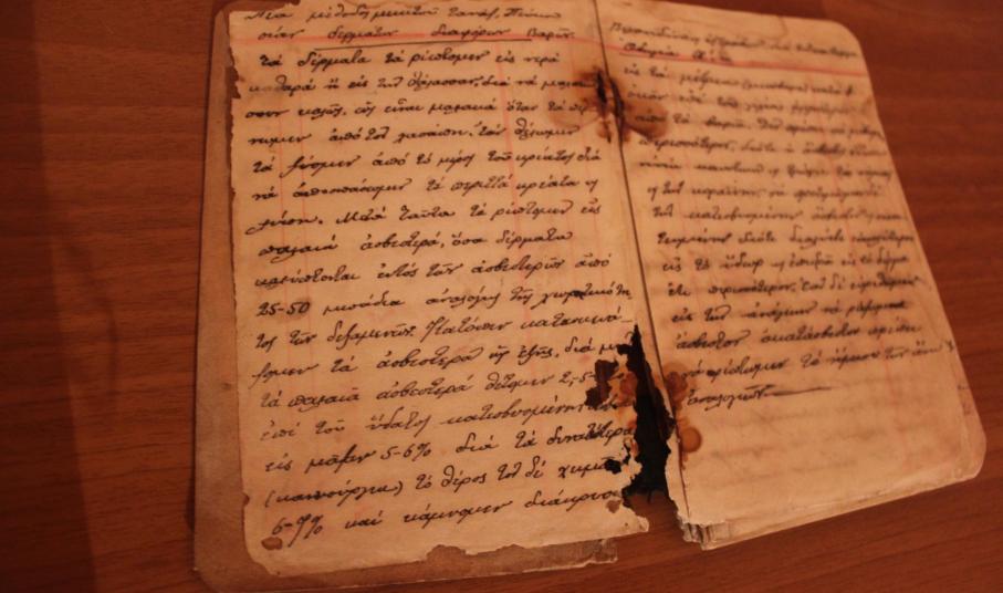 Ανάμεσα στο αρχείο αυτό, βρίσκεται και ένα χάρτινο χειρόγραφο τετράδιο 86 σελίδων, διαστάσεων 15x10 cm, το οποίο χρονολογείται γύρω στο 1938 από το εργαστήριο του βυρσοδέψη – ξυλογλύπτη Μιχάλη Πελεκάνου. Πρόκειται για δωρεά της Οικογένειας Μιχαήλ Πελεκάνου μέσω της κ. Αλίκης Τσουκαλά.
