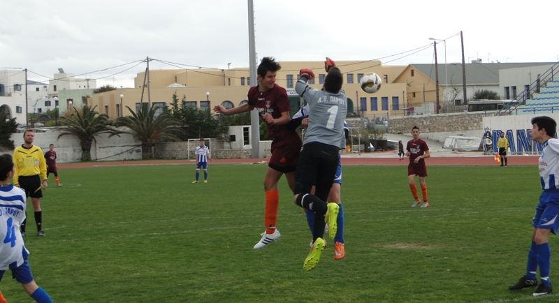 ΑΟ Πάρου (Ε. Φραντζής): Λούκης Σ., Τσαντάνης (26’ Δραγάτης), Κούκος, Νικολόπουλος, Καραφυλλάκης, Γκιόκα, Σκιαδάς (20’ Γεωργιάδης, (44’ λ.τ. Καραγιαννόπουλος), Γιατράς, Σαρρής Αν. Μαριανός, Πρίνα.