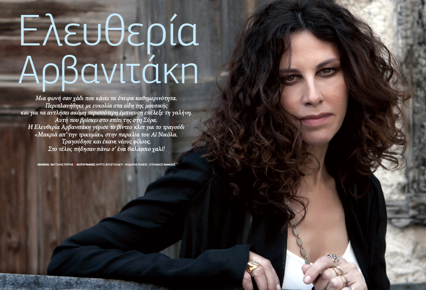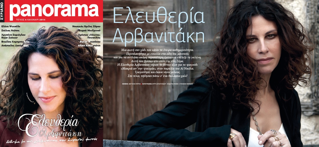 Κεντρικό πρόσωπο της καλοκαιρινής έκδοσης για το 2016 η Ελευθερία Αρβανιτάκη, που πρόσφατα απέδειξε για μία ακόμη φορά την αγάπη της για τη Σύρο, όταν την επέλεξε για τα γυρίσματα του νέου βιντεοκλίπ της. Το τραγούδι «Μακριά απ’ την τρικυμία» οπτικοποιήθηκε στην παραλία «Αστέρια» στην Ερμούπολη με σκηνοθέτη τον μόνιμο συνεργάτη της ερμηνεύτριας τα τελευταία χρόνια, Κωνσταντίνο Ρήγο. Στη συνέντευξη που παραχώρησε στον Βαγγέλη Περρή, η Ελευθερία Αρβανιτάκη αναφέρθηκε στην έμπνευση και τη γαλήνη που της προσφέρει η Σύρος, κάθε φορά που την επισκέπτεται, όχι μόνο ως τραγουδίστρια, αλλά και ως κάτοικος.