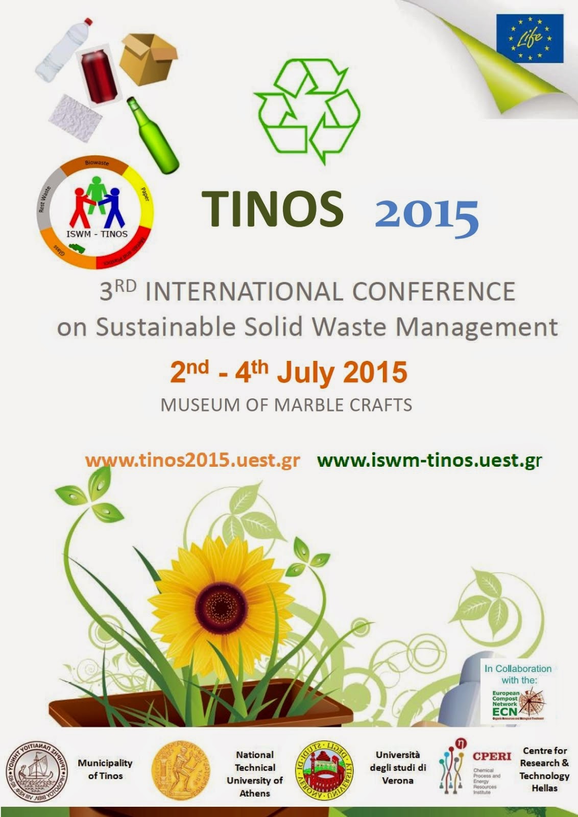 Το 3o Διεθνές Συνέδριο Βιώσιμης Διαχείρισης Στερεών Αποβλήτων με τίτλο “TINOS 2015” θα πραγματοποιηθεί το προσεχές καλοκαίρι (2-4 Ιουλίου) στο νησί της Τήνου, στο πλαίσιο του ευρωπαϊκού προγράμματος “LIFE ISWM”.