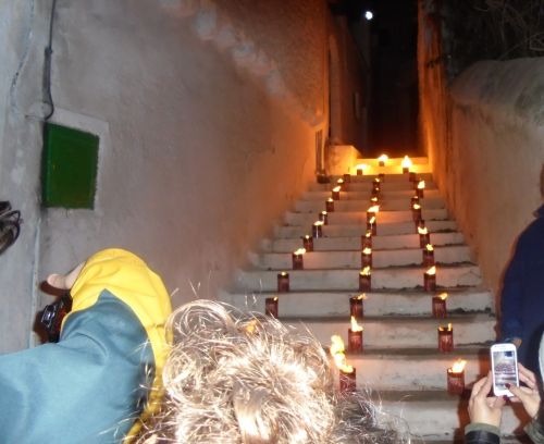 Οι ισχυροί άνεμοι δεν εμπόδισαν καμιά από τις εκκλησιές να περιφέρουν τους Επιταφίους τους σε όλο το νησί της Σαντορίνης και της Θηρασίας. 10.000 φωτιές αγκάλιασαν και φέτος το χωριό του Πύργου, προσφέροντας ένα ανεπανάληπτο θέαμα σε ντόπιους και επισκέπτες, οι οποίοι δε σταμάτησαν ούτε λεπτό να αποτυπώνουν με τις φωτογραφικές μηχανές τους το μοναδικό αυτό θέαμα και να εκφράζουν τον θαυμασμό τους. Συγκίνηση και δέος για τους χιλιάδες πιστούς τέλος, προσέφερε η καθιερωμένη συνάντηση των Επιταφίων της Μητρόπολης και του Κοντοχωρίου στην Κεντρική πλατεία των Φηρών.