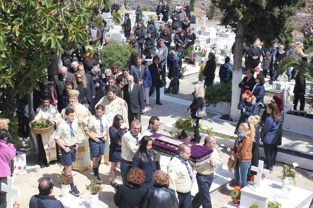 Μία ημέρα μετά την Ακολουθία των Αγίων Παθών και τη Σταύρωση του Ιησού, το πρωί της Μεγάλης Παρασκευής οι πιστοί συνέρρευσαν στις εκκλησίες για να βιώσουν το Θείο Δράμα. Ιδιαίτερη στιγμή αποτέλεσε η λιτάνευση του Επιταφίου στο Ιερό Κοιμητήριο του Αγίου Γεωργίου στην Ερμούπολη, με τα συναισθήματα βαθιάς συγκίνησης να “αγγίζουν” τις πιο ευαίσθητες χορδές των παρευρισκομένων. Αμέσως μετά τη λιτάνευση του “κεκοιμημένου Χριστού”, την οποία ακολούθησαν οι πιστοί με ευλάβεια αλλά και δάκρυα στα μάτια, μίλησε ο Σεβασμιώτατος Μητροπολίτης Σύρου, κ. Δωρόθεος Β΄, απευθύνοντας μήνυμα ζωής, αλλά κι αισιοδοξίας προς όλους, καθώς όπως ανέφερε, ο πόνος της απώλειας των δικών μας ανθρώπων, μπορεί να μας γεμίζει τεράστια θλίψη, όμως, θα πρέπει να γνωρίζουμε ότι αυτή τη συντριβή, απαλύνει σταδιακά η μετάβαση στην ολοκληρωμένη ζωή.