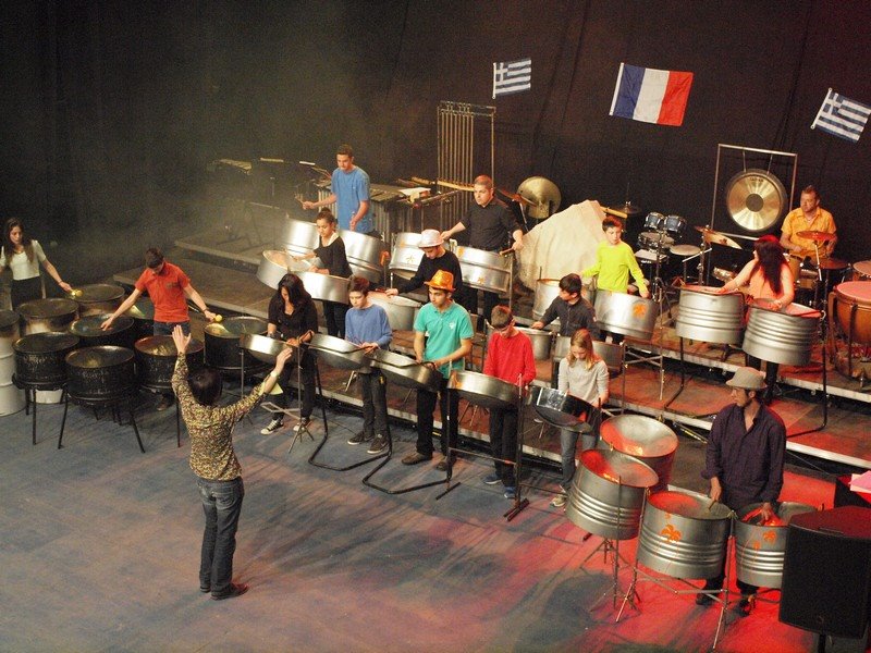 Μετά την εμφάνιση της Junior String Orchestra, 16 ντράμερ της Σύρου και της Villard – Bonnot, ζέσταναν ακόμη περισσότερο την ατμόσφαιρα με το ρυθμό τους, υπό την καθοδήγηση της κ. Burtz.