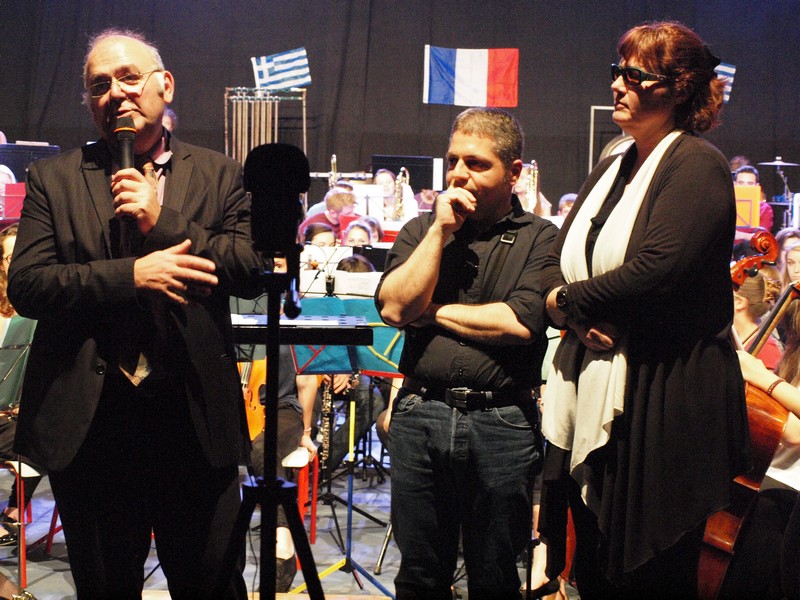 44 τέσσερις μουσικοί μαζί με 82 Γάλλους μουσικούς και και τους μαέστρους τους παρουσίασαν το αποτέλεσμα του εβδομαδιαίου σεμιναρίου ενώπιον 350 θεατών, οι οποίοι κατέκλυσαν το Centre Bergès in Villard-Bonnot. Το κοινό είχε την ευκαιρία να απολαύσει τις συνθέσεις “Magic Overture” (T. Doss), Choreografy (T. Sheldon), African Beat (A. Waignein) και “Άλλος για Χίο τράβηξε” του Δήμου Μούτση. Στο τέλος της παρουσίασης, οι μουσικοί είχαν τη χαρά να υποδεχτούν στη σκηνή την κ. Labarche και να επαναλάβουν μαζί της το τελευταίο κομμάτι, το οποίο καταχειροκροτήθηκε.