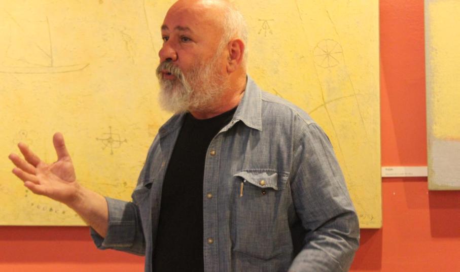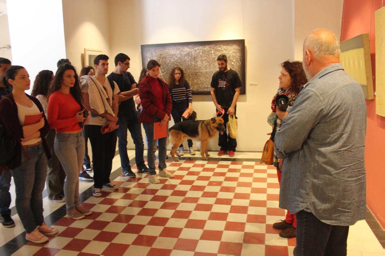Πρωτοετείς φοιτητές του Τμήματος Μηχανικών Σχεδίασης Προϊόντων και Συστημάτων του Πανεπιστημίου Αιγαίου υποδέχτηκε χθες στην Αίθουσα Τέχνης Γιάννη & Ελένης Βάτη, όπου φιλοξενείται η ατομική του έκθεση με τίτλο “Ευτέρπης Κύμα”, ο διακεκριμένος εικαστικός και χαράκτης, Απόστολος Κούστας.