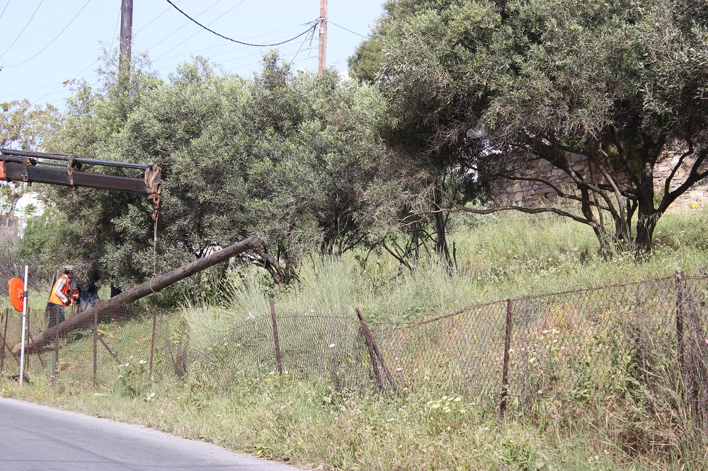 Ειδικότερα, χθες πριν τις δέκα το πρωί οι αρμόδιοι υπάλληλοι έχοντας λάβει όλα τα απαιτούμενα μέτρα ασφάλειας προχώρησαν στην αφαίρεση ενός στύλου εξαιτίας της υποβάθμισης που είχε υποστεί το ξύλο λόγω σήψης, προκειμένου να τοποθετηθεί νέος στύλος, αποτρέποντας με αυτόν τον τρόπο, την πρόκληση οποιασδήποτε εμπλοκής στην ηλεκτροδότηση της περιοχής.