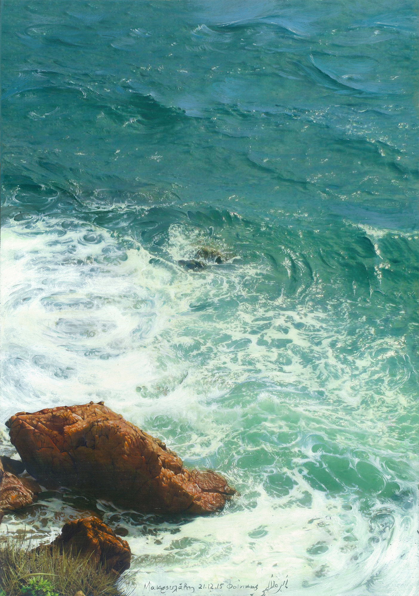 «Η θάλασσα, το υγρό στοιχείο, ασταθές σε διαρκή κίνηση και συνεχώς μεταβαλλόμενο, μου διέφευγε πάντα παρ όλο που γεννήθηκα και μεγάλωσα σε νησί», σημειώνει ο Μιχάλης Μακρουλάκης στον κατάλογο της έκθεσης και συνεχίζει: «Ίσως η πρώτη φορά που είδα μια κατανοητή σε μένα αποκρυπτογράφηση αυτού του μυστηρίου ήταν οι αριστουργηματικές υδατογραφίες του Βασίλη Θεοχαράκη! Μα η κύρια αιτία γι αυτά τα αιγαιοπελαγίτικα πορτραίτα ήταν τα ακατανίκητα κύματα του μεγάλου Παναγιώτη Τέτση που δεν υπολείπονται σε σκληράδα των βράχων που πάνω τους σκάνε.