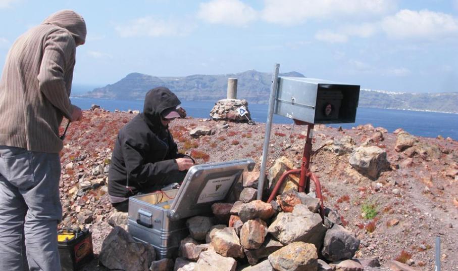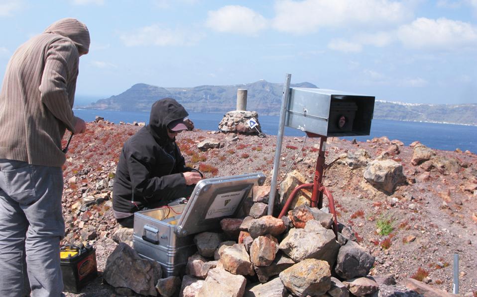 Το ηφαίστειο του μαγευτικού αιγαιοπελαγίτικου νησιού έχει την τύχη να είναι ένα από τα πιο μελετημένα και παρακολουθούμενα από τους επιστήμονες στον κόσμο. Οπως εξηγεί ο κ. Βουγιουκαλάκης, η συστηματική παρακολούθησή του ξεκίνησε στις αρχές της δεκαετίας του ’90 μέσω ενός ευρωπαϊκού προγράμματος, στο πλαίσιο του οποίου «στήθηκε» στο νησί ένα σύγχρονο δίκτυο παρακολούθησης. Οταν το πρόγραμμα τελείωσε, η επιστημονική κοινότητα (Πανεπιστήμια Αθήνας, Θεσσαλονίκης και Πάτρας, το Γεωδυναμικό Ινστιτούτο κ.ά.), με τη βοήθεια του Δήμου Θήρας, φορέων και ιδιωτών χορηγών, ίδρυσαν το Ινστιτούτο Μελέτης και Παρακολούθησης του Ηφαιστείου της Σαντορίνης, προκειμένου να μη χαθεί όλη η δουλειά που είχε προηγηθεί. Οταν το 2011 ξεκίνησε η ηφαιστειακή δραστηριότητα, το Ινστιτούτο έτυχε της άμεσης στήριξης της διεθνούς επιστημονικής κοινότητας. «Εχουμε εξαιρετική συνεργασία με κρατικούς ερευνητικούς φορείς και πανεπιστήμια, κυρίως από τη Βρετανία και την Ιταλία. Χάρη στη βοήθειά τους, αναβαθμίσαμε το δίκτυο και αποκτήσαμε τα πιο σύγχρονα μηχανήματα, λ.χ. μικροαναλυτές αερίων, υπέρυθρες κάμερες. Παράλληλα δόθηκε η ευκαιρία να γίνει από την αρχή ο σχεδιασμός για την εκτίμηση του σεισμικού κινδύνου και τα σχέδια διαχείρισης του νησιού σε περίπτωση προβλήματος (ο περίφημος “Ξενοκράτης”)».