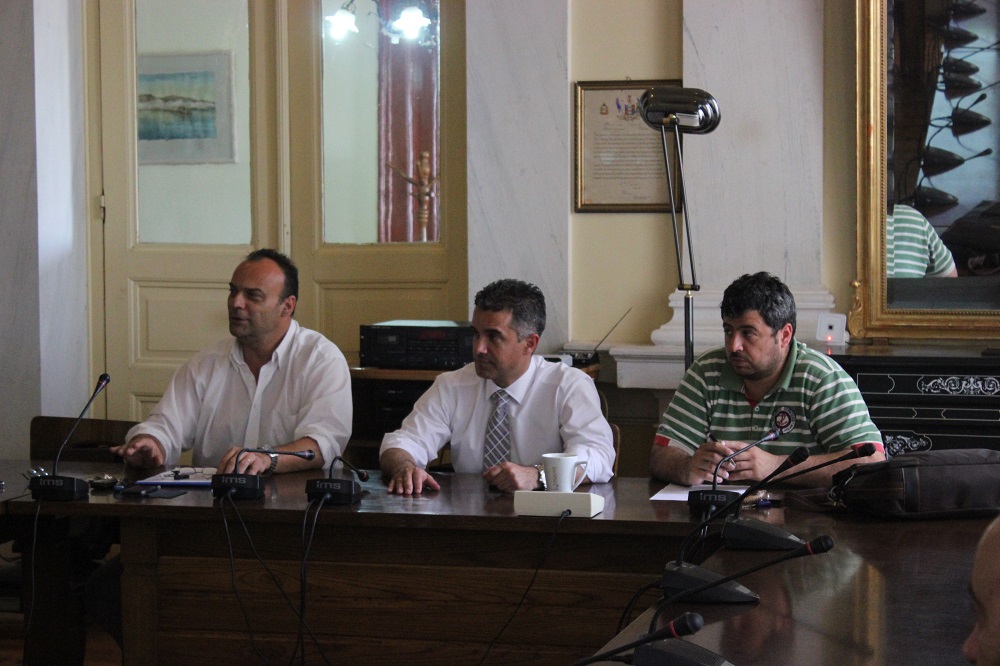 Της παρουσίασης των λεπτομερειών του έργου της ανάπλασης προηγήθηκε η τοποθέτηση του προέδρου του Δημοτικού Λιμενικού Ταμείου Σύρου, Δημήτρη Κοσμά, παρουσία και του αντιπροέδρου, Φραγκίσκου Βακόνδιου. “Πιστεύουμε ότι είναι ένα έργο που θα δώσει πνοή τόσο οπτικά, όσο και επιχειρηματικά. Η παραλία της Ερμούπολης είναι η βιτρίνα μας είναι η αυλή μας” τόνισε εξ αρχής ο κ. Κοσμάς, λέγοντας παράλληλα πως, “Αυτό, το γνωρίζετε πάρα πολύ καλά, επειδή δραστηριοποιείστε χρόνια σε αυτήν την περιοχή. Ήταν ένα μεγάλο στοίχημα, το οποίο είχε ξεκινήσει πριν από δέκα χρόνια. Κατορθώσαμε με πολύ κόπο και μόχθο μέσα σε τέσσερις μήνες να πάρουμε τις αδειοδοτήσεις και όλα τα σχετικά έγγραφα για να υλοποιηθεί αυτό το έργο, το οποίο εάν δεν έχει τελειώσει έως τις 31/12/2015 χάνουμε 1,5 εκατ. Ευρώ για το νησί μας”. Πρόσθεσε δε, πως, καθώς “ήταν σημαντική η απόφαση της νέας Δημοτικής Αρχής να προχωρήσει στην υλοποίηση αυτού του έργου “, κρίνεται απαραίτητη πλέον και η συνδρομή των πολιτών και δη των επιχειρηματιών. “Έχουμε υπόψιν μας ότι το καλοκαίρι θα είναι δύσκολη περίοδος. Εκτός από τις τρέχουσες συνθήκες που επικρατούν σε όλη την Ελλάδα κι επηρεάζουν, θα αναγκαστούμε να επωμιστούμε μία ακόμη δυσκολία, την υλοποίηση του έργου που θα γίνει όμως τμηματικά” συμπλήρωσε ο πρόεδρος του Δημοτικού Λιμενικού Ταμείου, καταλήγοντας πως, “από εσάς ζητάμε κατανόηση, υπομονή κι επιμονή γιατί αυτό που θα υποστούμε φέτος το καλοκαίρι, θα μας αποζημιώσει τριπλάσια και τετραπλάσια τα επόμενα χρόνια”.