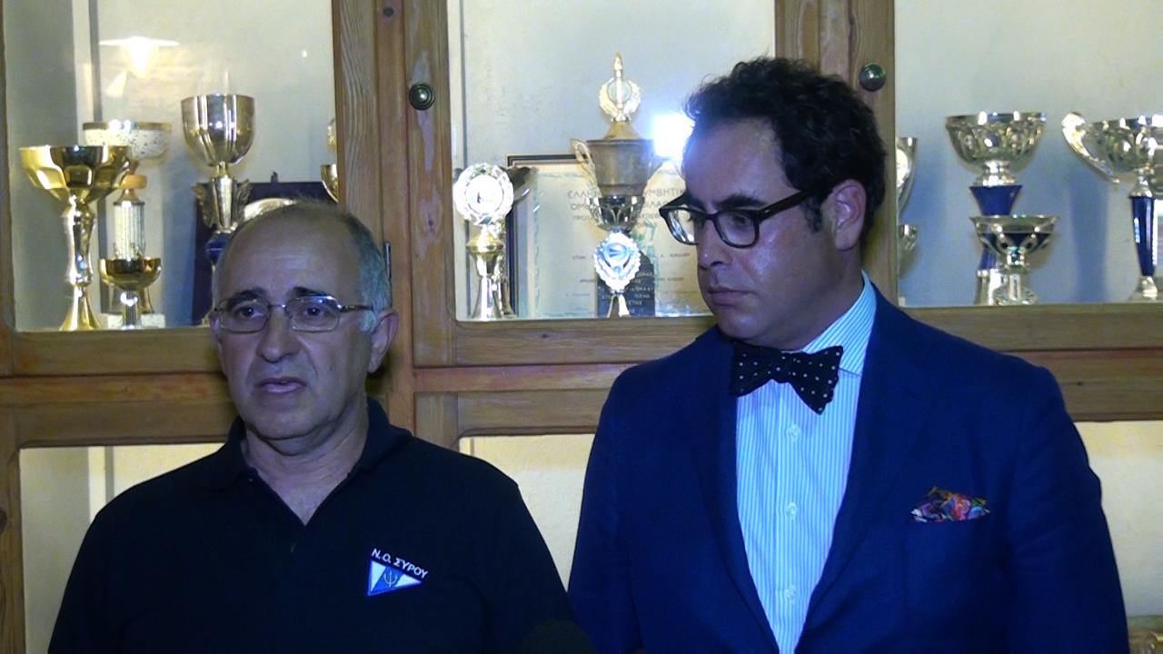 Κατά τη διάρκεια της εκδήλωσης ο Γενικός Γραμματέας, αλλά και έφορος ανοικτής Θαλάσσης του Ναυτικού Ομίλου Σύρου, Μίλτος Σακελαρίου είπε: "Προκηρύσσουμε τον 3ο διεθνή αγώνα παραδοσιακών και κλασσικών σκαφών "Syros Classic Yacht Regatta 2015". Είναι ένας αγώνας οποίος θα πραγματοποιηθεί σε συνεργασία με τον Ναυτικό Όμιλο Ελλάδας, είναι η τρίτη χρονιά που θα διεξαχθεί αυτό το αγώνας και θα περιλαμβάνει παραδοσιακά σκάφη. Είναι μεγάλη μας χαρά που τον ανακοινώνουμε παρουσία του εκπροσώπου του Ν.Ο. Ελλάδας, του κ. Ανδρεάδη. Είναι μία νέα προσπάθεια και θα γίνει πρώτη φορά σε συνεργασία μεταξύ τριών Ομίλων, της Κέρκυρας, του Ν.Ο. Ελλάδας και της Σύρου. Θα γίνουν τρεις διαφορετικές διαδρομές και οι αγώνες θα ξεκινήσουν στις 5 Ιουνίου στην Κέρκυρα, θα συνεχιστούν στις Σπέτσες και θα καταλήξουμε στη Σύρο στις 16-28 Ιουνίου. Ο Ν.Ο. Ελλάδας ξεκίνησε τους αγώνες το 2011 στις Σπέτσες κι έτσι άνοιξε ένα νέο κεφάλαιο στην Ιστιοπλοΐα, συνδυάζοντας την παράδοση με τον αθλητισμό. Αυτή τη στιγμή έχουμε καταφέρει να υπάρχει συνέργεια των ομίλων και να γίνει ευρέος γνωστό διεθνώς.
