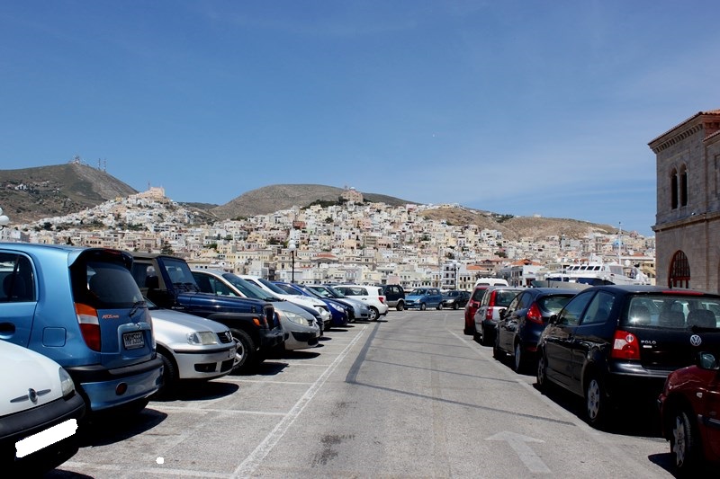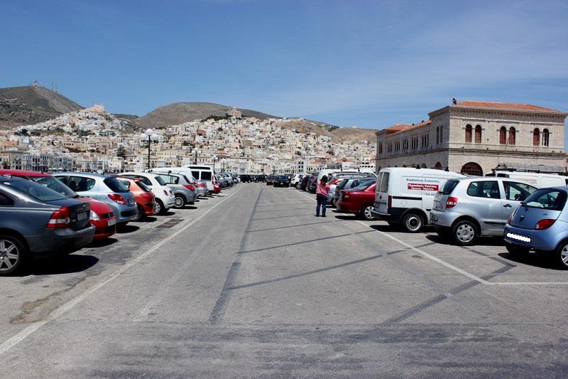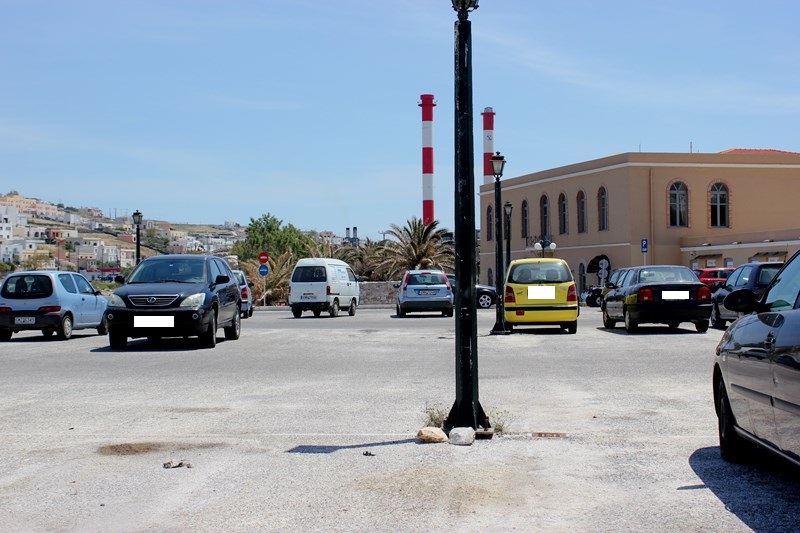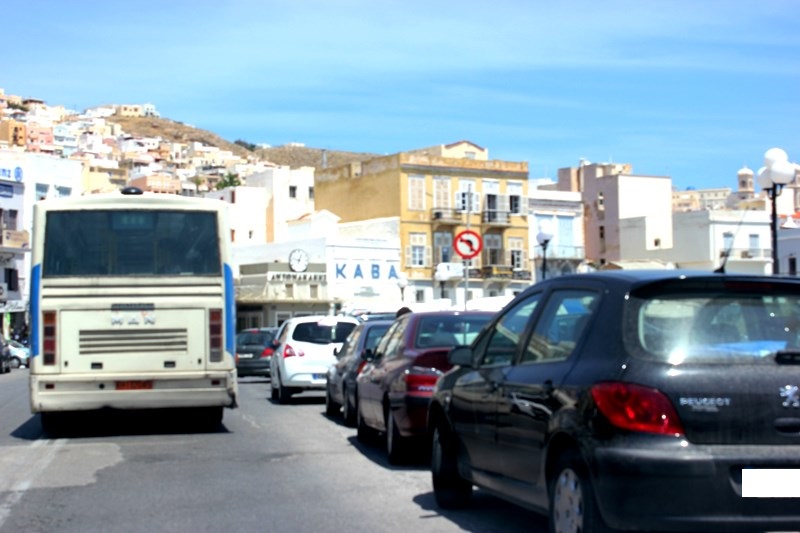 Παράλληλα, τα οχήματα των οδηγών, με προορισμό το κέντρο, από τις πρωινές ώρες στοιχίζονται κατά δεκάδες στους παράδρομους, περιμετρικά της πλατείας Μιαούλη και σε οποιοδήποτε σημείο δίνεται η δυνατότητα, είτε επιτρέπεται η στάθμευση είτε όχι, προκαλώντας μια αντιαισθητική εικόνα συμφόρησης στα ιστορικής αξίας πλακόστρωτα, με μάρμαρο ή γρανίτη, στενά της Ερμούπολης, ενώ παρεμποδίζεται και η διάβαση των υπόλοιπων οχημάτων, των Mini Bus, όπως και των πεζών.
