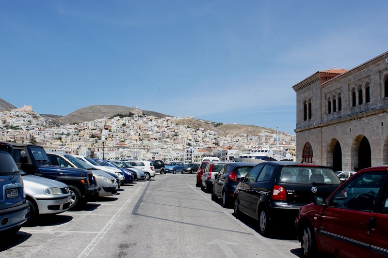 Καταγράφοντας την κίνηση των οχημάτων από νωρίς το πρωί, πριν ακόμη την έναρξη του ωραρίου λειτουργίας των καταστημάτων, στο κέντρο της Ερμούπολης – ώρα 08:30 – καταγράφεται ήδη αυξημένη κίνηση, αλλά και συγκέντρωση παρκαρισμένων οχημάτων, τόσο στο χώρο στάθμευσης στην περιοχή «Νησάκι», όσο και περιμετρικά, στους γύρω δρόμους, τα οποία ανήκουν, κατά κύριο λόγο, στους υπαλλήλους των δημόσιων και δημοτικών υπηρεσιών, καθώς και στους επαγγελματίες και εργαζομένους επιχειρήσεων εστίασης.
