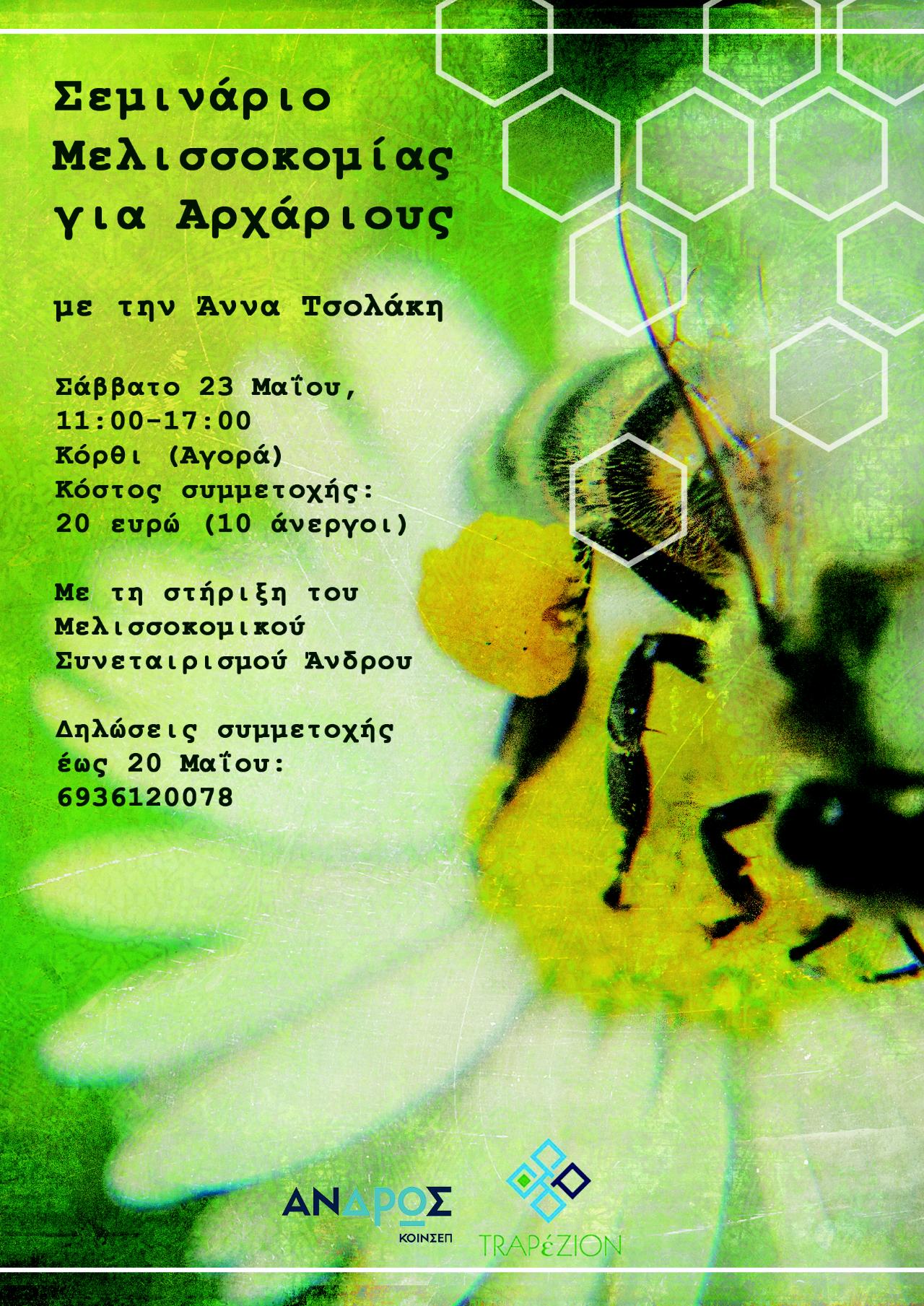 Το σεμινάριο πραγματοποιείται με την υποστήριξη του Μελισσοκομικού Συνεταιρισμού Άνδρου και σε συνεργασία με την ΤRAPέΖΙΟΝ εκπαιδευτικές & συμβουλευτικές υπηρεσίες.