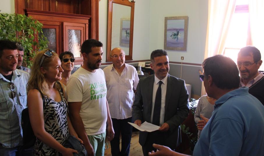 Τη διαβεβαίωση πως τα αιτήματά τους θα ληφθούν σοβαρά υπόψιν πριν την οριστικοποίηση των τελικών αποφάσεων για τα προς εφαρμογή κυκλοφοριακά μέτρα της καλοκαιρινής περιόδου, έδωσε ο δήμαρχος, Γιώργος Μαραγκός στους εκπροσώπους των μονίμων κατοίκων της Ερμούπολης, το μεσημέρι της Παρασκευής, οπότε και του επέδωσαν το ψήφισμά τους στο Δημαρχιακό Μέγαρο.