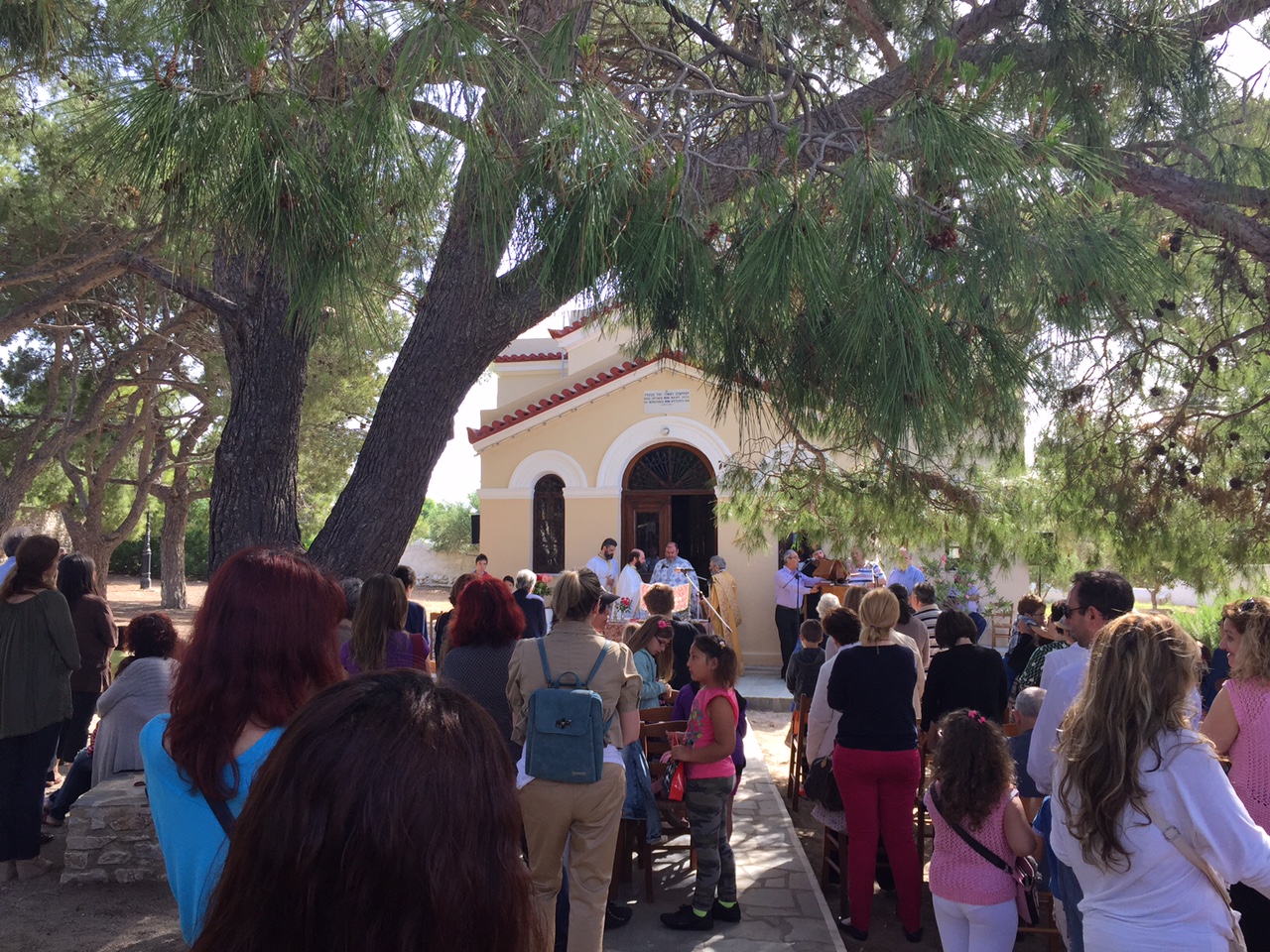 Στο πλαίσιο της ημέρας, τελέσθηκε από τον Πρωτοπρ. Πέτρο Μαραγκό, Γενικό Διευθυντή των Κατηχητικών Σχολείων της Ιεράς Μητροπόλεως, Θεία Λειτουργία στον αύλειο χώρο της εκκλησίας, συνιερουργούντος του Πανοσιολ. εφημερίου του Ναού και Διακόνων.