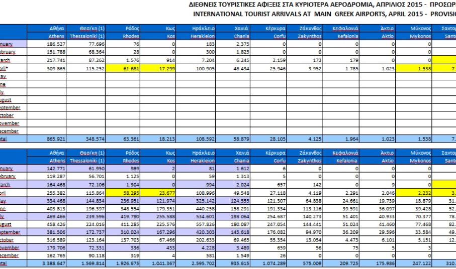 Αναλυτικότερα, για το νησί της Σαντορίνης η σεζόν ξεκινά με τους καλύτερους οιωνούς, αφού το γεγονός πως έχει αποσπάσει την εμπιστοσύνη των επισκεπτών την οδηγεί για τον μήνα Απρίλιο να συναντά τον διπλάσιο αριθμό αφίξεων αεροπλάνων από προορισμούς εκτός Ελλάδας. Σύμφωνα με τα στατιστικά στοιχεία του ΣΕΤΕ, τον περασμένο μήνα οι αφίξεις ανήλθαν σε 7.664 συνολικά, ενώ αξίζει να αναφερθεί πως τον αντίστοιχο μήνα του 2014 άγγιξαν τις 3.965.