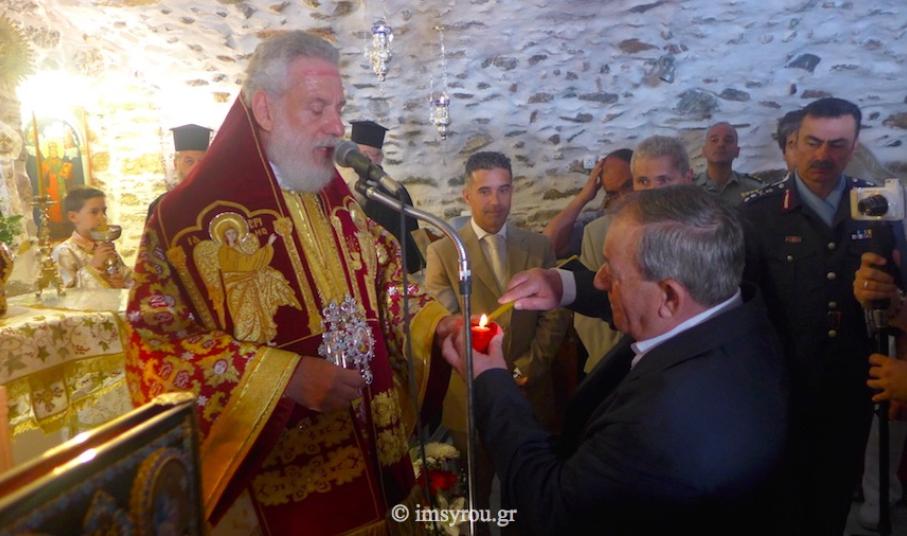 Στη λειτουργία παρευρέθηκαν μεταξύ άλλων ο Δήμαρχος Σύρου – Ερμούπολης Γιώργος Μαραγκός, εκπρόσωποι της δημοτικής αρχής, του στρατού, του ναυτικού και της αστυνομίας, του διοικητού της Ναυτικής Βάσης Σύρου, Πολιτευτών των Κυκλάδων και ο Διευθυντής της Δευτεροβάθμιας Εκπαίδευσης Κυκλάδων, Χρήστος Μιχαλόπουλος.