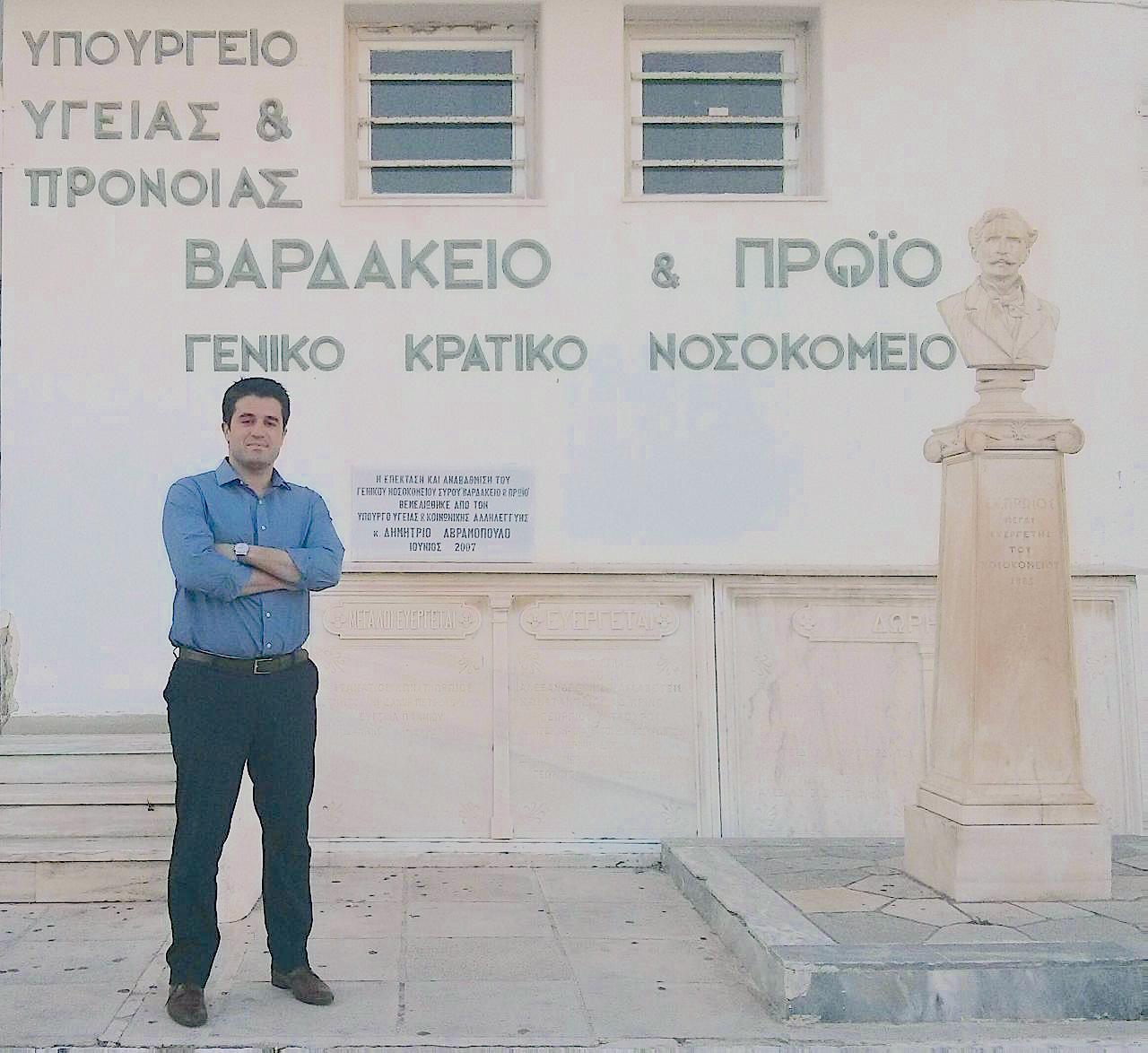 “Μετά από ένα κενό Διοίκησης περίπου ενός έτους κατά το 2013, με το Νοσοκομείο να λειτουργεί έως τότε χάρη στο έργο των Διευθυντών Ιατρικής και Διοικητικής Υπηρεσίας αλλά σημαντικότερα του συνόλου των εργαζομένων, ανέλαβα να διαχειριστώ τον δυσμενέστερο προϋπολογισμό που συνόδευε την υγεία των πολιτών του νομού Κυκλάδων. Παρά τις όποιες ποιοτικές εκπτώσεις, θεωρώ ότι όλες οι δομές υγείας και το ανθρώπινο δυναμικό ανταπεξήλθαν στην πρόκληση και στο ρόλο του κοινωνικού λειτουργού, με πολύ φιλότιμο και προσωπική προσφορά στον συνάνθρωπο. Έτσι, αναφερόμενοι μόνο στο Γενικό Νοσοκομείο Σύρου, ενδεικτικά κατά το τελευταίο έτος επενδύσαμε περισσότερο από 1εκ. ευρώ σε φάρμακα, υγειονομικό υλικό και αντιδραστήρια για να διαφυλάξει την υγεία των ασφαλισμένων και ανασφάλιστων πολιτών των Κυκλάδων. Νοσήλευσαμε 3.421 περιστατικά επί συνόλου 13.000 ημερών νοσηλείας. Ολοκληρώσαμε με επιτυχία 5.000 συνεδρίες αιμοκάθαρσης, 1.700 χειρουργικές επεμβάσεις, 125 γεννήσεις, 17.600 απεικονιστικές πράξεις, 20.000 ραντεβού τακτικών εξωτερικών ιατρείων και 14.000 επισκέψεις στο τμήμα επειγόντων. Ο στρατηγικός σχεδιασμός στην αρχή του περασμένου έτους ήταν να διατηρήσουμε από τη μία πλευρά τις παρεχόμενες υπηρεσίες σε όσο το δυνατόν υψηλότερα επίπεδα αλλά και κατά δεύτερον, να αναδείξουμε τις όποιες αδικίες παρατηρούνταν κατά τα τελευταία χρόνια σε επίπεδα Υγειονομικής Περιφέρειας, επιτυγχάνοντας έτσι να αντιστρέψουμε την αρνητική αυτή τάση κατά τα έτη που έρχονται”.