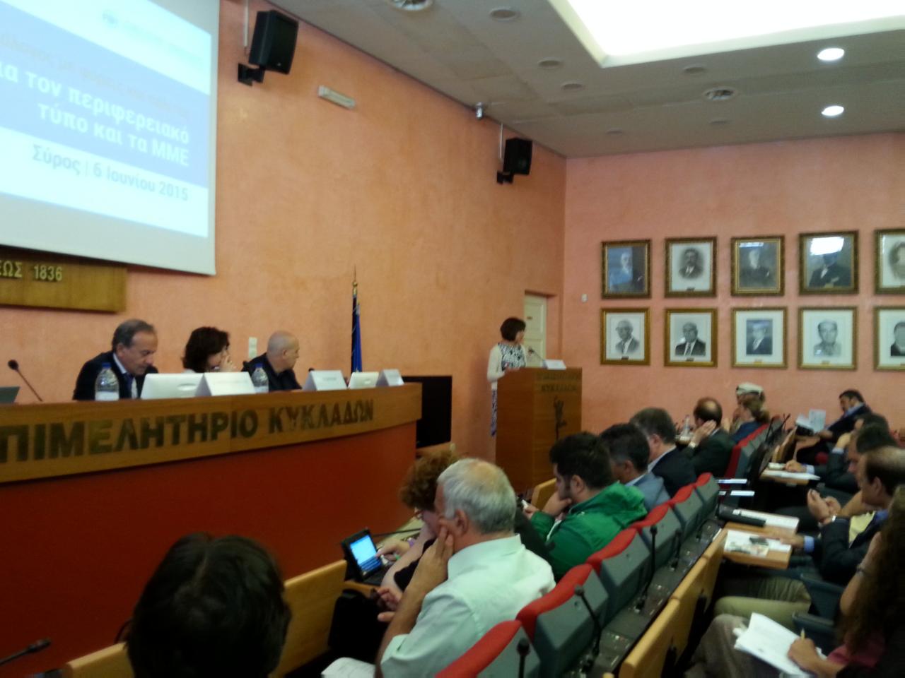 Ημερίδα για τον Περιφερειακό Τύπο και τα ΜΜΕ της Περιφέρειας Ν. Αιγαίου πραγματοποίησε στη Σύρο η Αντιπροσωπεία της Ευρωπαϊκής Επιτροπής και το Γραφείο του Ευρωπαϊκού Κοινοβουλίου στην Ελλάδα, με την υποστήριξη του Επιμελητηρίου Κυκλάδων και του Δήμου Σύρου – Ερμούπολης, το Σάββατο, 6 Ιουνίου.