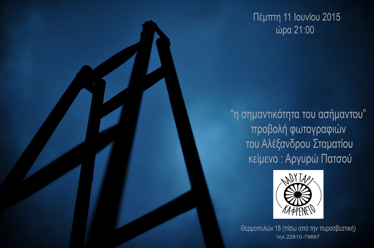 Η προβολή θα γίνει την Πέμπτη 11 Ιουνίου στις 21:00 στο Καφρενείο “Λαουτάρι, όπισθεν της Πυροσβεστικής. Τις φωτογραφίες θα συνοδεύσουν κείμενα της Αργυρούς Πατσού.