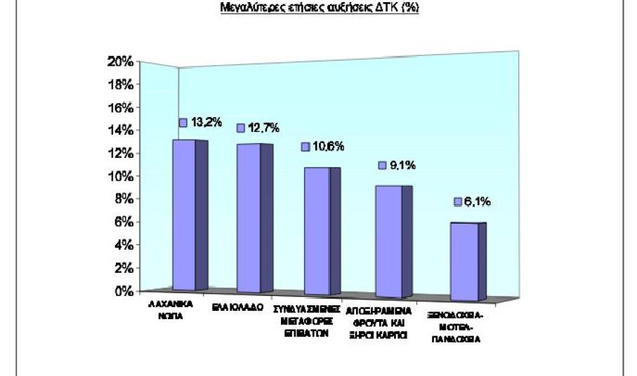 α) Κατά 0,5% της ομάδας «Διατροφή και μη αλκοολούχα ποτά», λόγω αύξησης κυρίως των τιμών στο ελαιόλαδο, νωπά ψάρια, νωπά λαχανικά, καφές, αποξηραμένα φρούτα και ξηροί καρποί. Μέρος της αύξησης αυτής αντισταθμίστηκε από τη μείωση κυρίως των τιμών στα νωπά φρούτα, ψωμί, ζάχαρη κοινή και γαλακτοκομικά και αυγά.