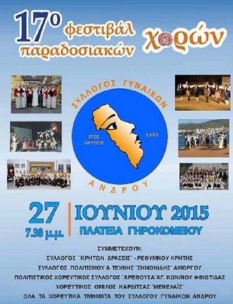 Η μεγάλη γιορτή της παράδοσης και του πολιτισμού, με την υπογραφή του Συλλόγου Γυναικών Άνδρου γιορτάζεται φέτος για 17η συνεχή χρονιά στην Πλατεία Γηροκομείου με 150 χορευτές παραδοσιακών χορών όλων των ηλικιών.