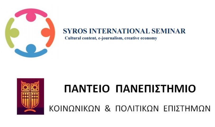 Ανοίγει τις πύλες του σήμερα, το Διεθνές Σεμινάριο του Παντείου Πανεπιστημίου, με θέμα την ηλεκτρονική δημοσιογραφία, τον πολιτισμό και τη δημιουργική οικονομία, το οποίο θα πραγματοποιείται από σήμερα έως το επόμενο Σάββατο 27 Ιουνίου, στο νησί της Σύρου.