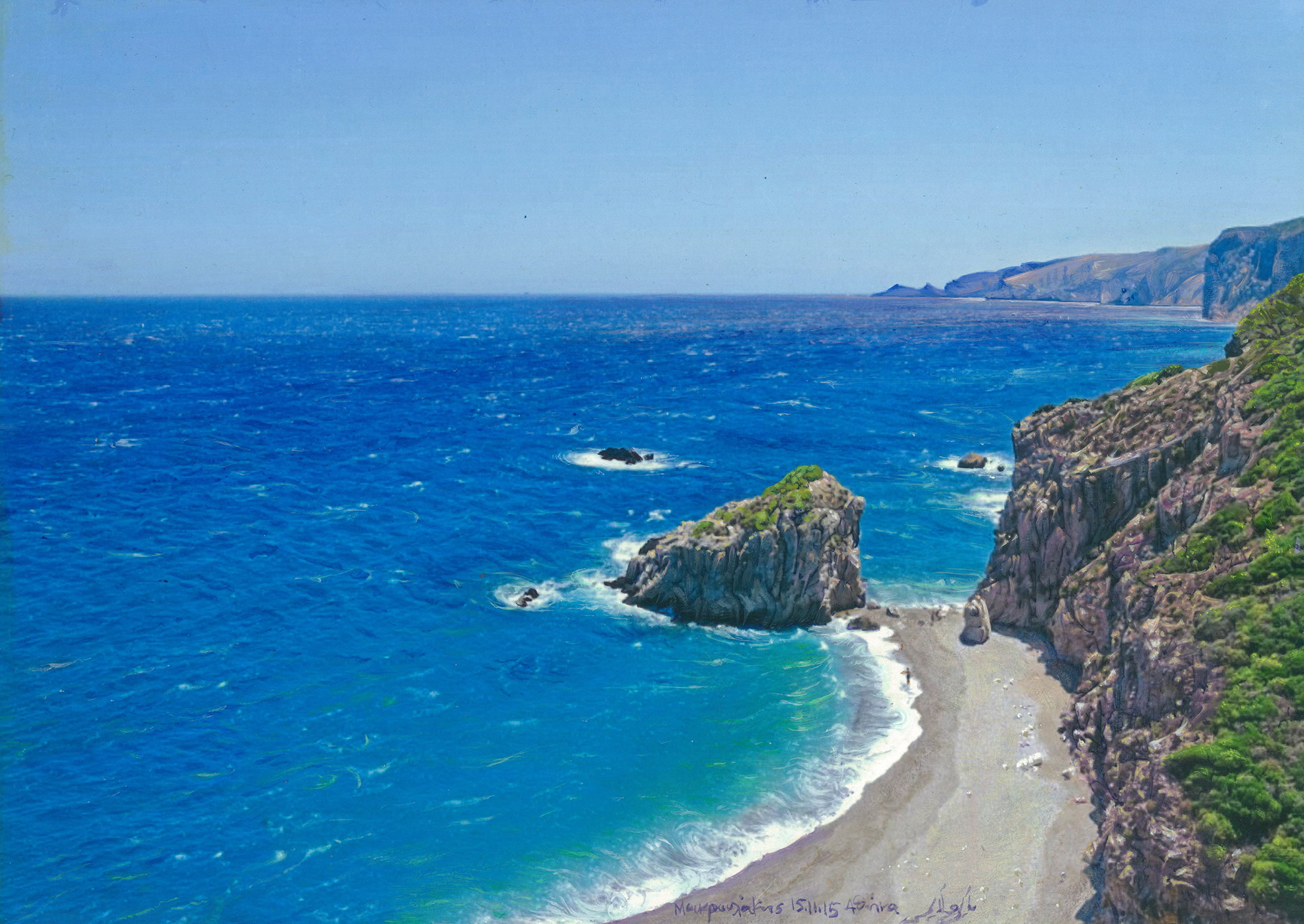 «Η θάλασσα, το υγρό στοιχείο, ασταθές σε διαρκή κίνηση και συνεχώς μεταβαλλόμενο, μου διέφευγε πάντα παρ όλο που γεννήθηκα και μεγάλωσα σε νησί», σημειώνει ο Μιχάλης Μακρουλάκης στον κατάλογο της έκθεσης και συνεχίζει: «Ίσως η πρώτη φορά που είδα μια κατανοητή σε μένα αποκρυπτογράφηση αυτού του μυστηρίου ήταν οι αριστουργηματικές υδατογραφίες του Βασίλη Θεοχαράκη! Μα η κύρια αιτία γι αυτά τα αιγαιοπελαγίτικα πορτραίτα ήταν τα ακατανίκητα κύματα του μεγάλου Παναγιώτη Τέτση που δεν υπολείπονται σε σκληράδα των βράχων που πάνω τους σκάνε.