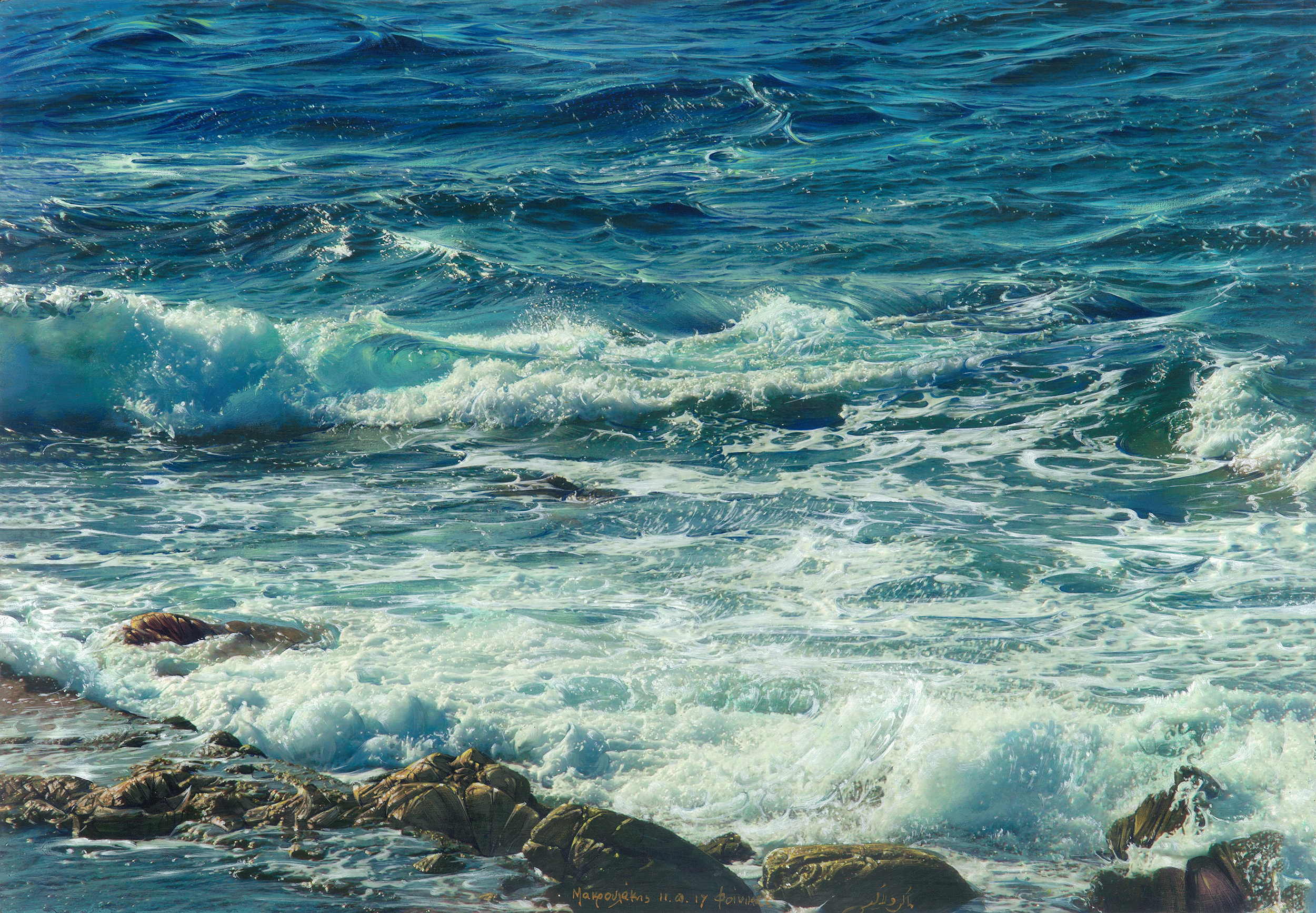 Την θαλασσινή αύρα μεταφέρει αυτούσια στη νέα σειρά έργων του που δημιούργησε ο ζωγράφος Μιχάλης Μακρουλάκης για την έκθεση του που εγκαινιάζεται στην γκαλερί Kapopoulos Fine Arts στη Μύκονο στις 18 Ιουνίου, με τον εύγλωττο τίτλο Πορτραίτα της θάλασσας του Αιγαίου.