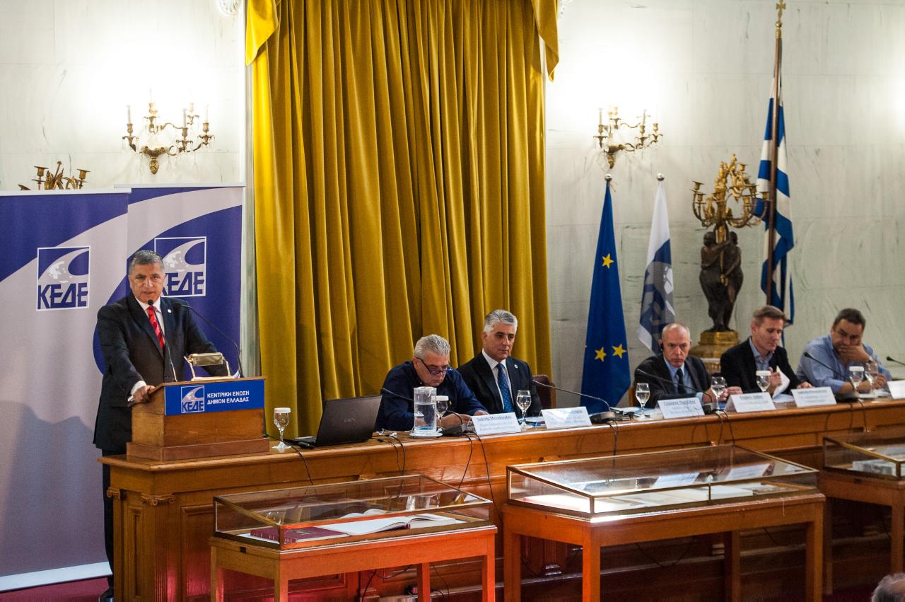 «Τα χρόνια που προηγήθηκαν είδαμε να επιδεινώνεται η οικονομική θέση των ελληνικών Δήμων. Η κρατική χρηματοδότηση μειώθηκε κατακόρυφα, σε ποσοστό που ξεπερνά το 60%. Το ίδιο συνέβη με τη φοροδοτική ικανότητα των νοικοκυριών και επιχειρήσεων στα χρόνια της κρίσης, γεγονός που υποχρέωσε τη συντριπτική πλειοψηφία των Δήμων να μειώσουν κατακόρυφα τα ανταποδοτικά τέλη, που αποτελούν την κύρια πηγή εσόδων μας.