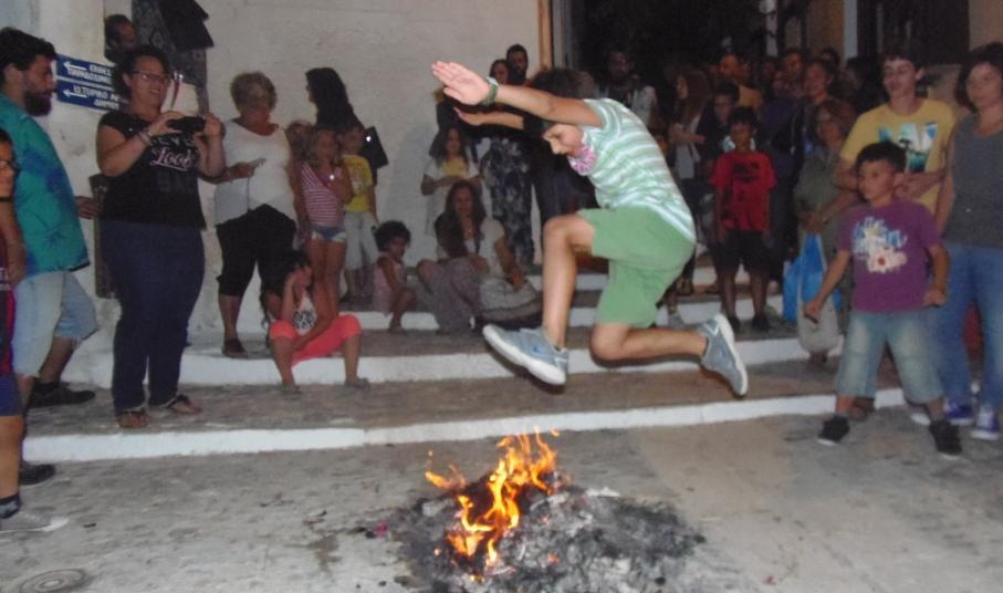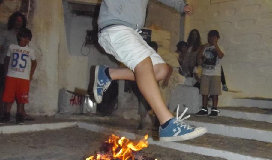 Τα έθιμα του Κλήδονα και του αφανού αναβίωσαν το βράδυ της Τρίτης πολιτιστικοί σύλλογοι της Σύρου, οι οποίοι καλούν κάθε χρόνο τους φίλους τους να φέρουν τα μαγιάτικα στεφάνια τους, να τα κάψουν, να πηδήξουν τις φωτιές και να διώξουν το κακό.