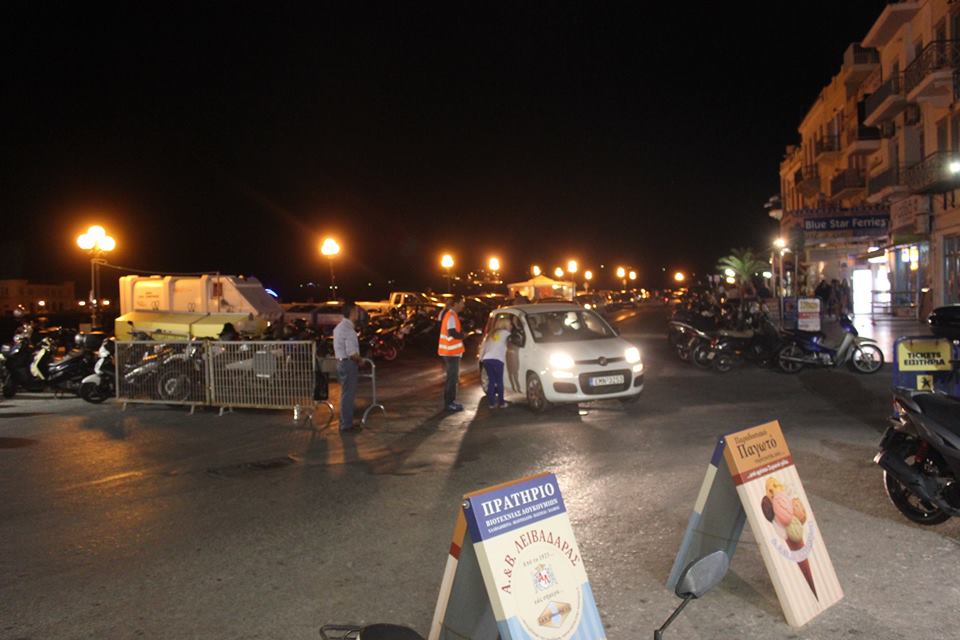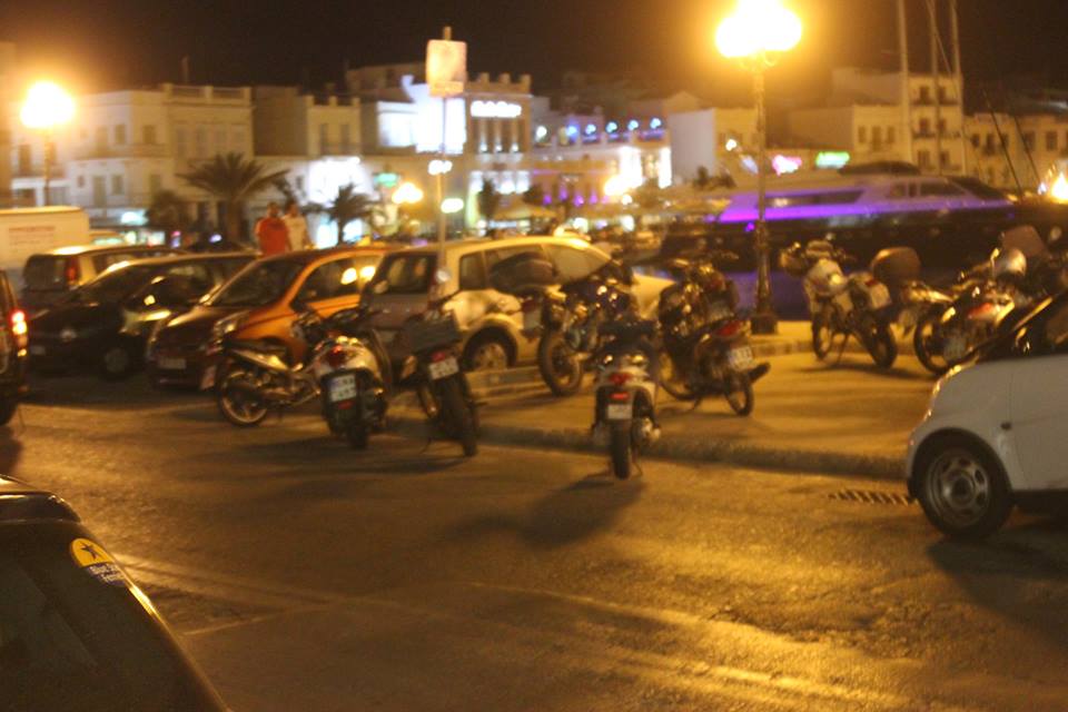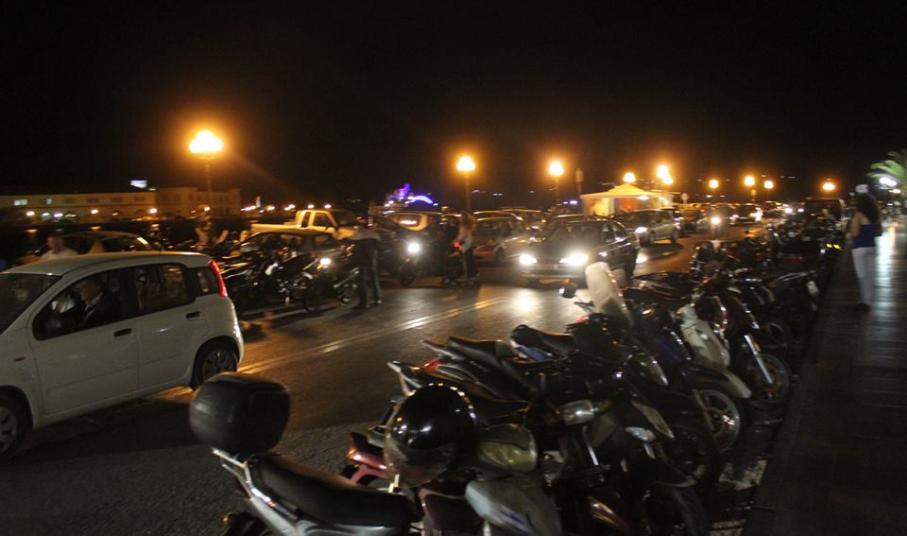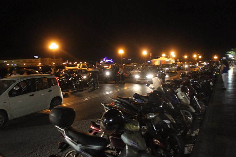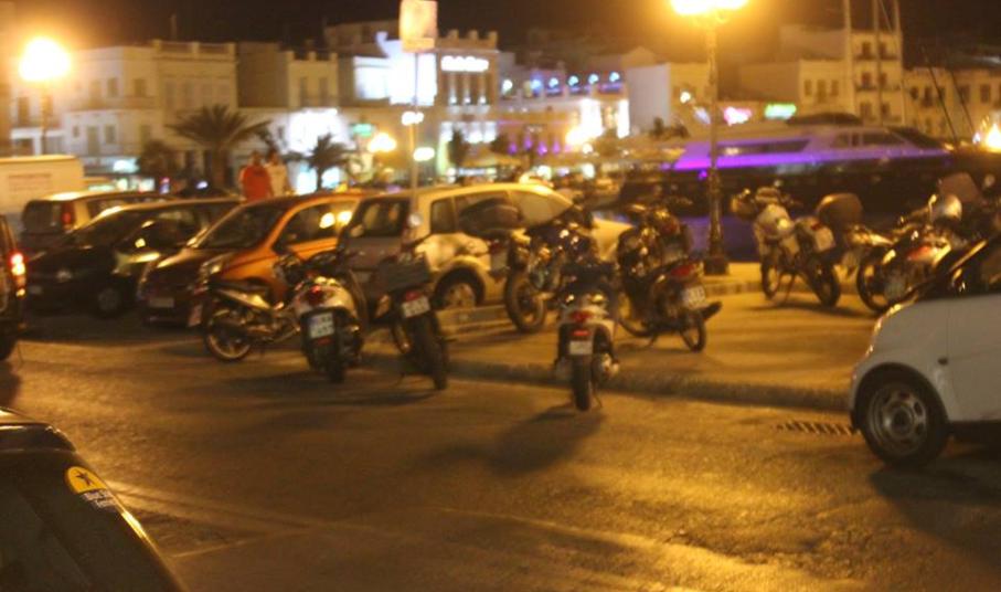 Σε χώρο στάθμευσης μοιάζει να έχει μετατραπεί το πεζοδρόμιο κατά μήκος της Ακτής Παπάγου και συγκεκριμένα στο σημείο έναρξης των νέων κυκλοφοριακών μέτρων, στο ύψος της οδού Κέας, κατά τη διάρκεια του ωραρίου απαγόρευσης διέλευσης των δικύκλων προς το κέντρο της Ερμούπολης τις βραδινές ώρες.