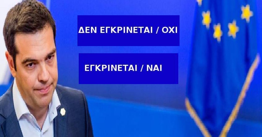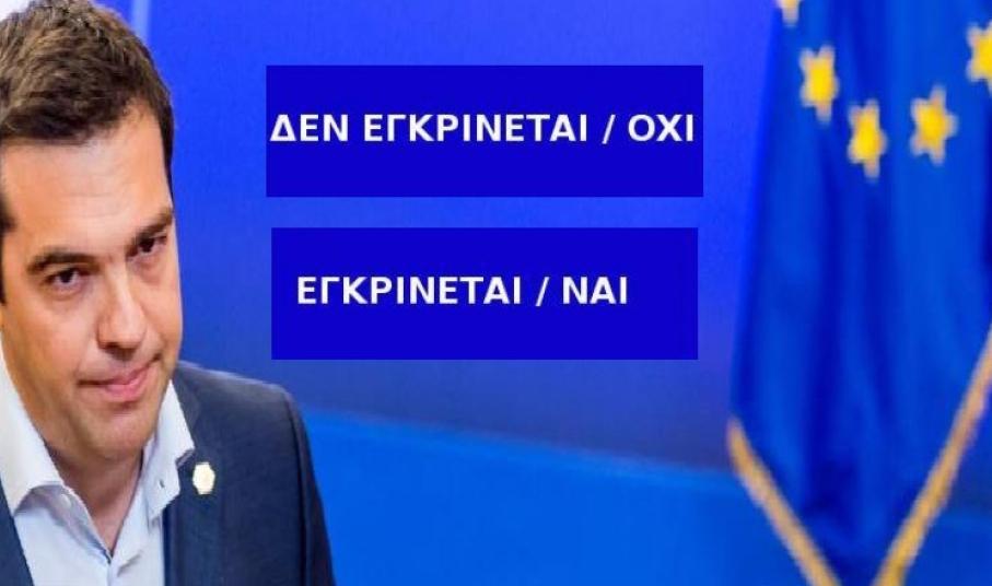 Όσοι πολίτες απορρίπτουν την πρόταση των τριών θεσμών ψηφίζουν ΔΕΝ ΕΓΚΡΙΝΕΤΑΙ/ΟΧΙ