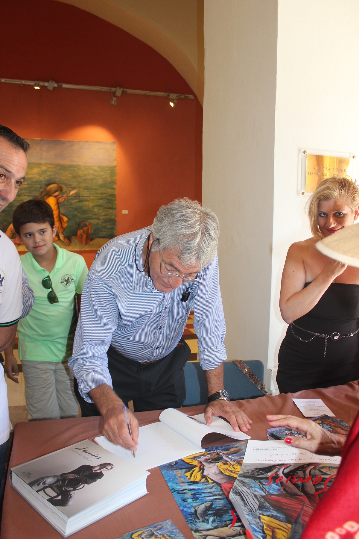 Τα εγκαίνια της έκθεσης πραγματοποιήθηκαν το περασμένο Σάββατο, παρουσία της Διευθύντριας της Εθνικής Πινακοθήκης – Μουσείου Αλεξάνδρου Σούτζου κ. Μαρίνας Λαμπράκη – Πλάκα, του προέδρου του διοικητικού συμβουλίου Απόστολου Μπότσου, της αντιπροέδρου Έλλης Βαρότσου – Σούτζου, του εφοπλιστή και λάτρη της Σύρου Αντώνη Κομνηνού και πλήθους φιλότεχνων. Το “παρών” έδωσαν μεταξύ άλλων ο Αντιδήμαρχος Αλέξης Αθανασίου και Συριανοί καλλιτέχνες, όπως ο Μιχάλης Μακρουλάκης και ο Νίκος Πονηρός.